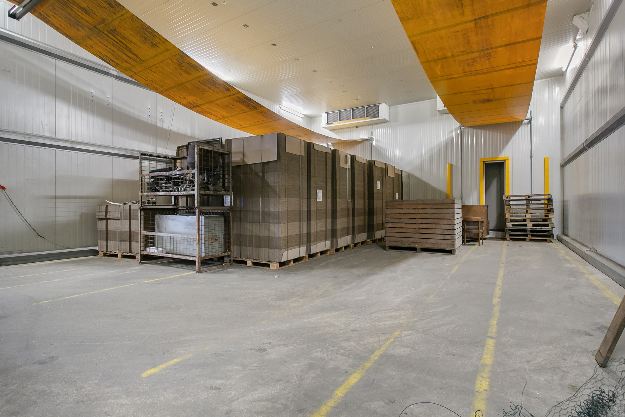 Schuur 1 beschikt over twee werkruimtes met vier koelcellen, twee grote koelcellen (waarvan een met twee verdampers en een met vier verdampers) en twee kleinere koelcellen met elk een verdamper. Een werkruimte heeft tevens een autohefbrug. Boven deze werkruimtes bevindt zich een houten zoldering met kantoor. Daarnaast is er een laad- en losruimte, technische ruimte met twee compressoren en een koelinstallatie. De oppervlakte van deze schuur betreft 1.250 m2 en is gebouwd in 1993. Het beschikt daarnaast over elektrische overheaddeuren en een zonnestroomststeem uit 2021 met 203 zonnepanelen die goed zijn voor een capaciteit van 60.000 KWh.
