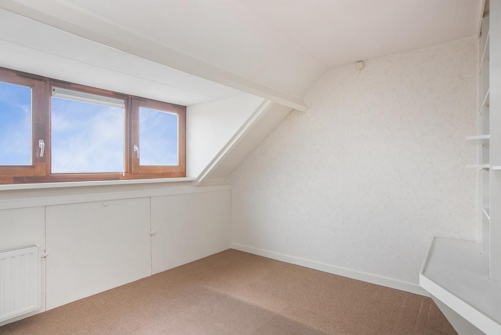 Op de tweede verdieping betreed je eerst de voorzolder. Hier is de Cv-ketel te vinden. Door het dakraam heeft deze ruimte voldoende licht en is het mogelijk om hier een eigen werkplaats of extra kantoorruimte te creëren. De deur op de overloop geeft toegang tot de vierde slaapkamer van de woning. Door de doorgang naar een tweede badkamer van het huis, is dit een luxe ‘en suite’. Echter, het is ook mogelijk een tweede deur te maken vanaf de overloop. Er is dan een vijfde slaapkamer met eigen douchegelegenheid gerealiseerd. Ideaal voor een groot gezin!
