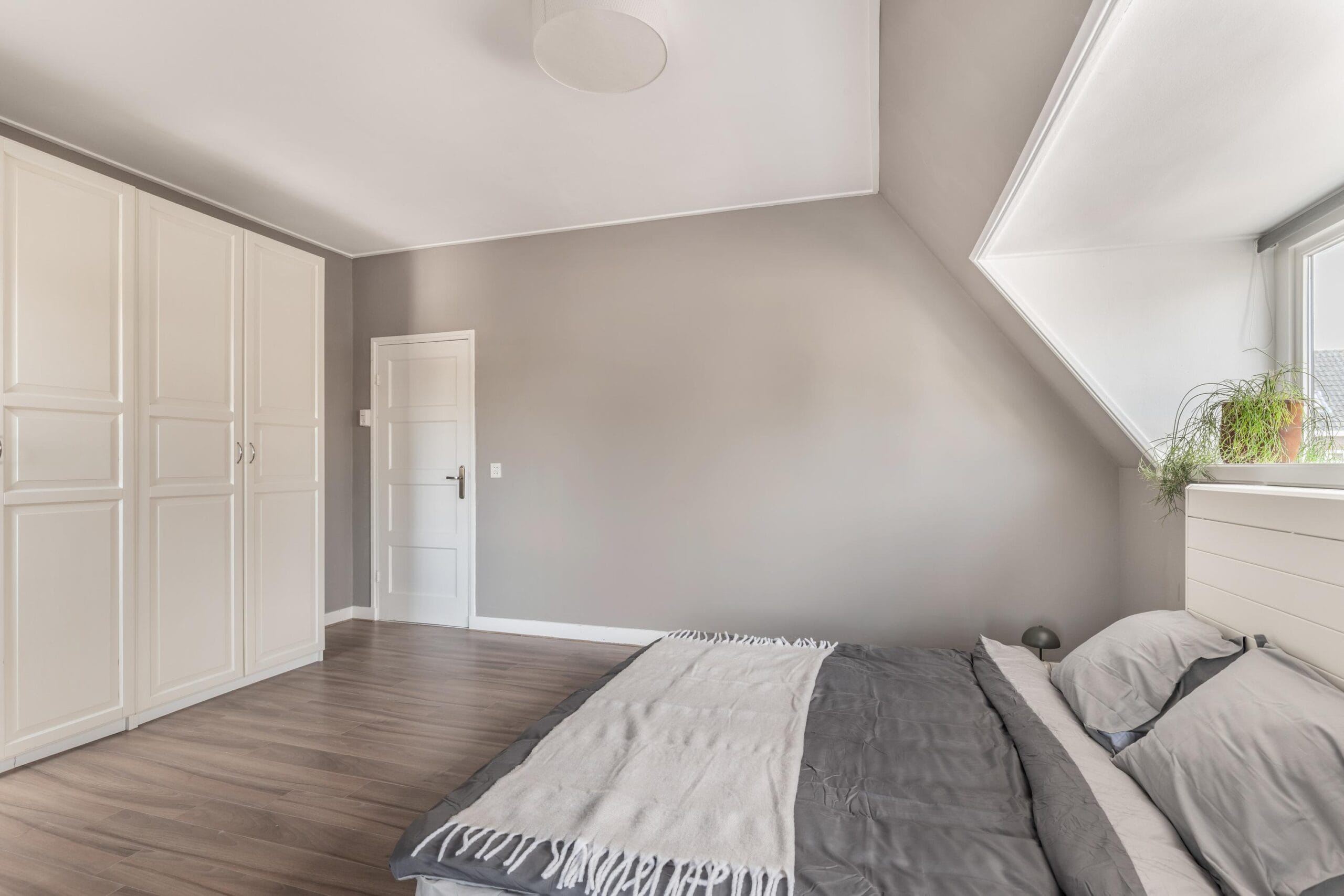 The top floor is spacious, versatile, and neatly finished. Perfect for use as an extra bedroom, home office, or hobby room. Here you’ll also find the connections for the washing machine and dryer.