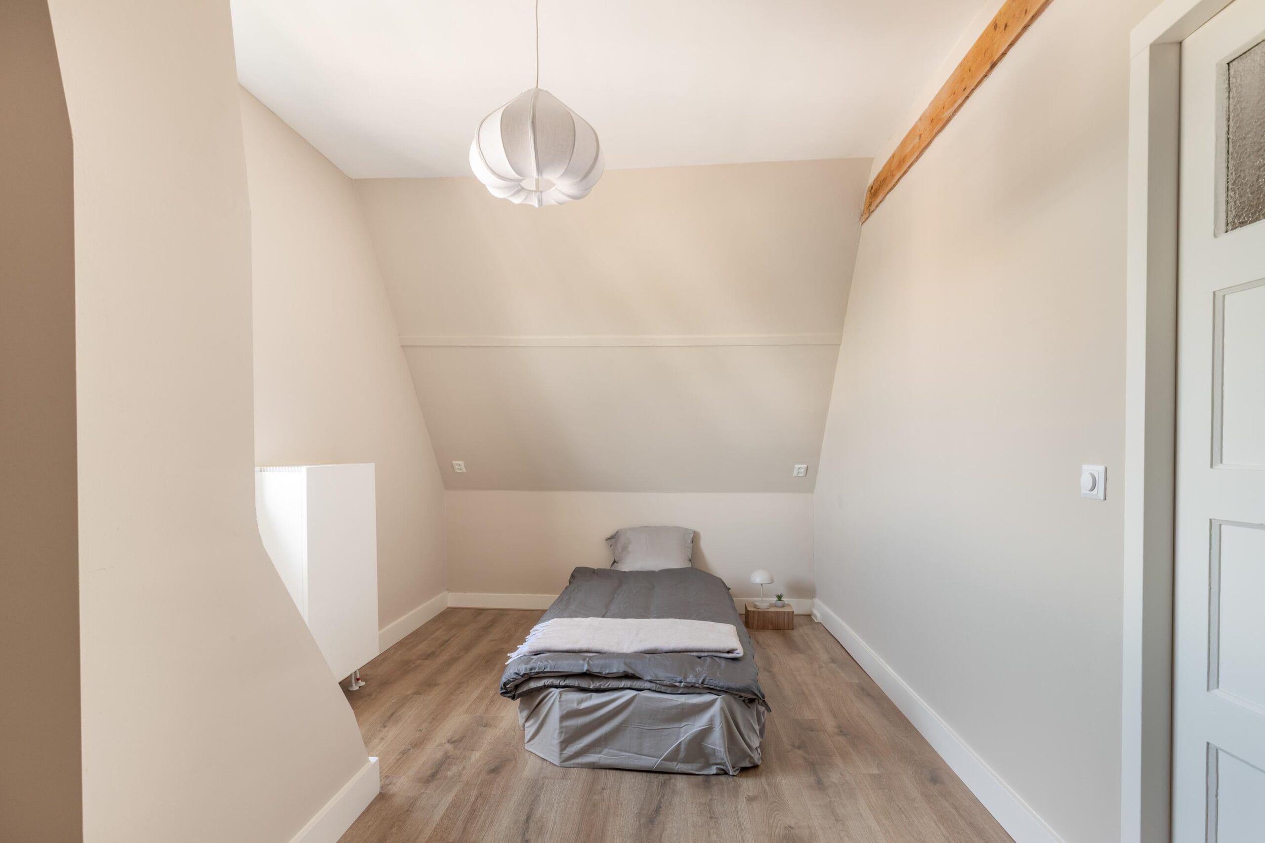 This floor houses two spacious, fully insulated bedrooms, both with plenty of natural light. The front bedroom provides access to a balcony. Thanks to the extension, both rooms now feature practical niches, perfect as a reading corner or for placing a musical instrument.