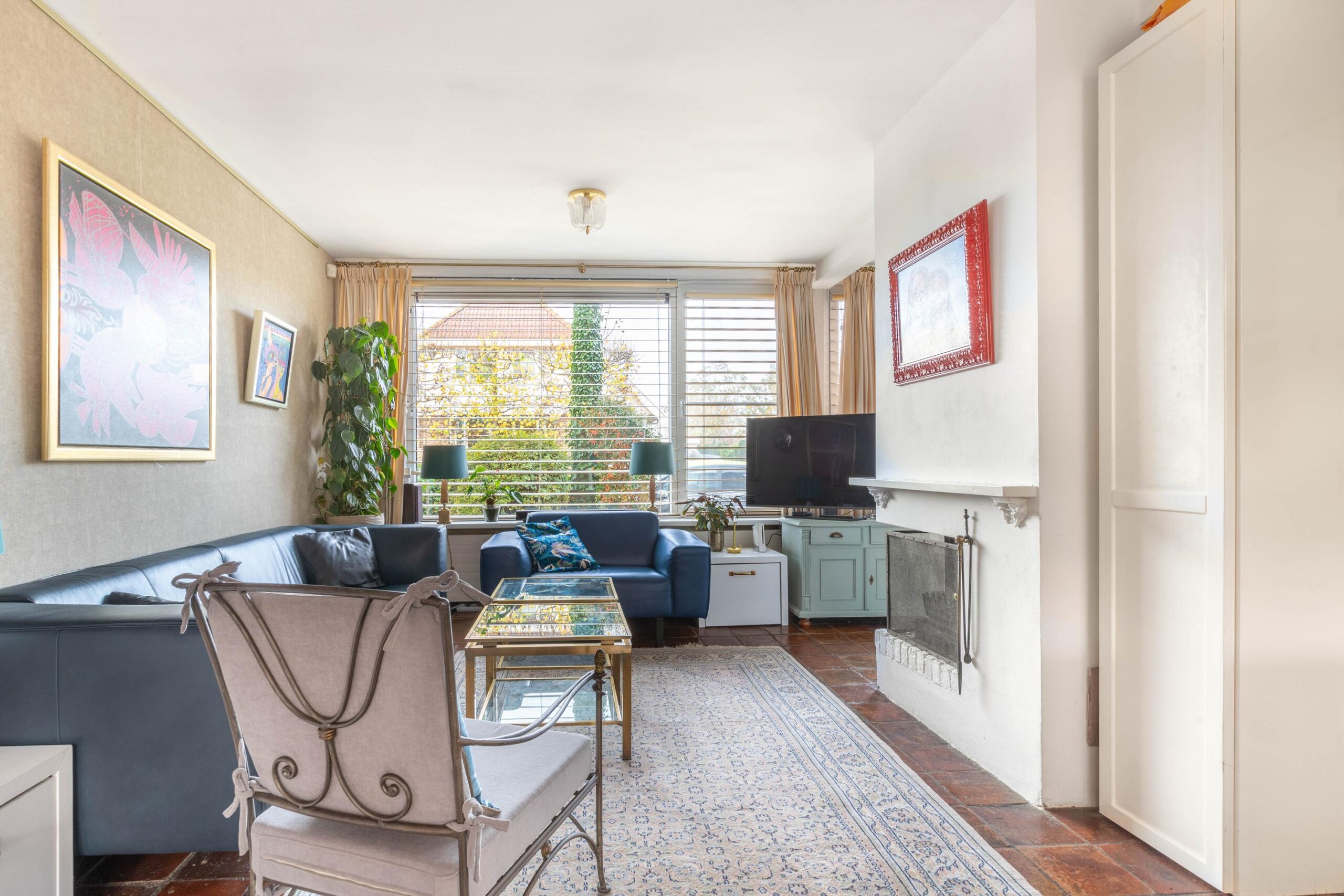 Upon entering the hall, you’ll find the meter cupboard and access to both the kitchen and living room. The living room has a playful layout, with several cozy spots to read, listen to music, or unwind. The extension has been cleverly used as a charming corner with a view of the garden. Thanks to the French doors and skylight, this space feels wonderfully bright and spacious.