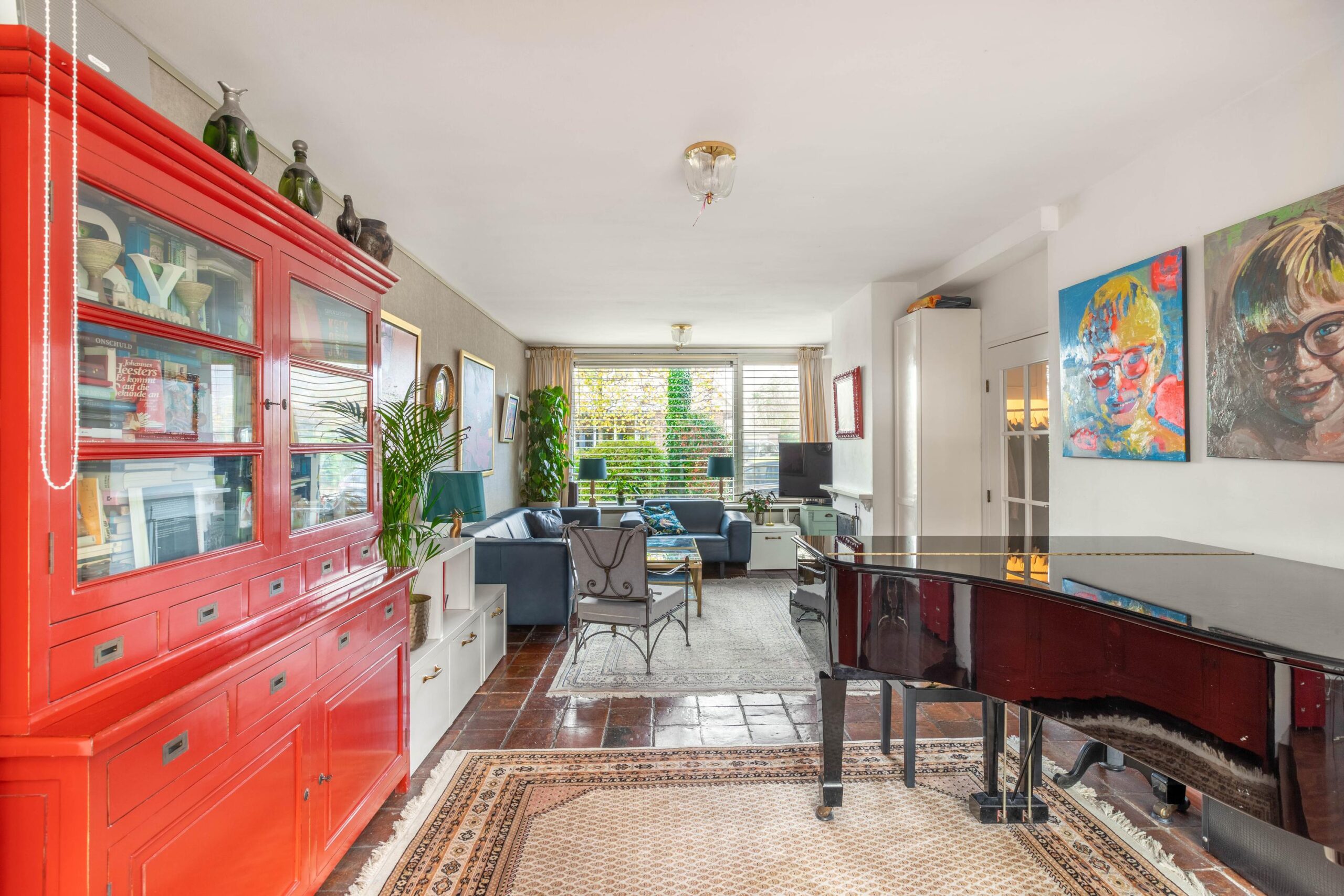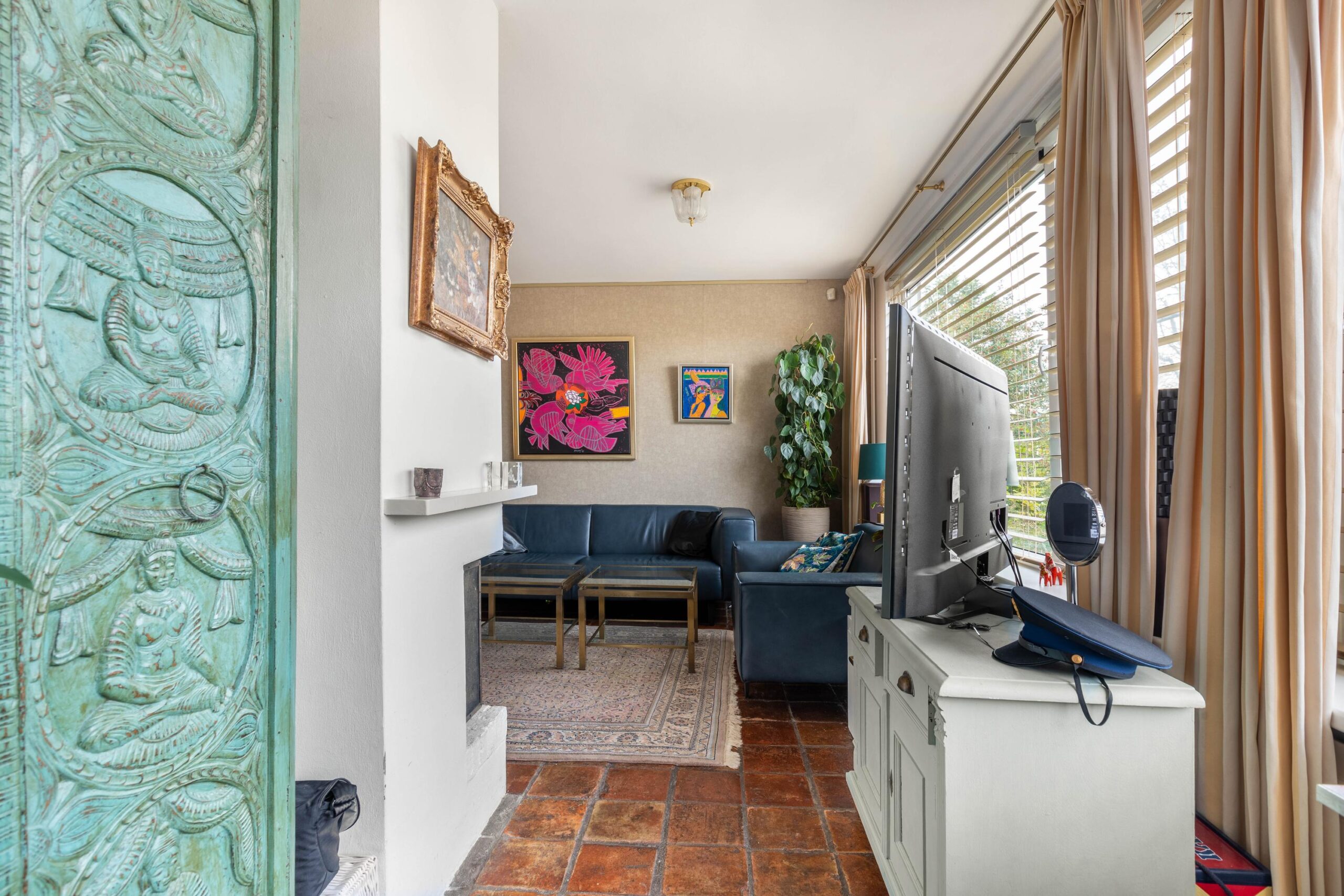 Bij binnenkomst in de hal vindt u de meterkast en de toegang tot de keuken en de woonkamer. De woonkamer is speels ingedeeld, met meerdere plekken om te lezen, muziek te luisteren of u even terug te trekken. De aanbouw is ideaal benut als gezellige hoek met zicht op de tuin. Dankzij de openslaande deuren en de lichtstraat voelt deze ruimte bijzonder licht en ruimtelijk.