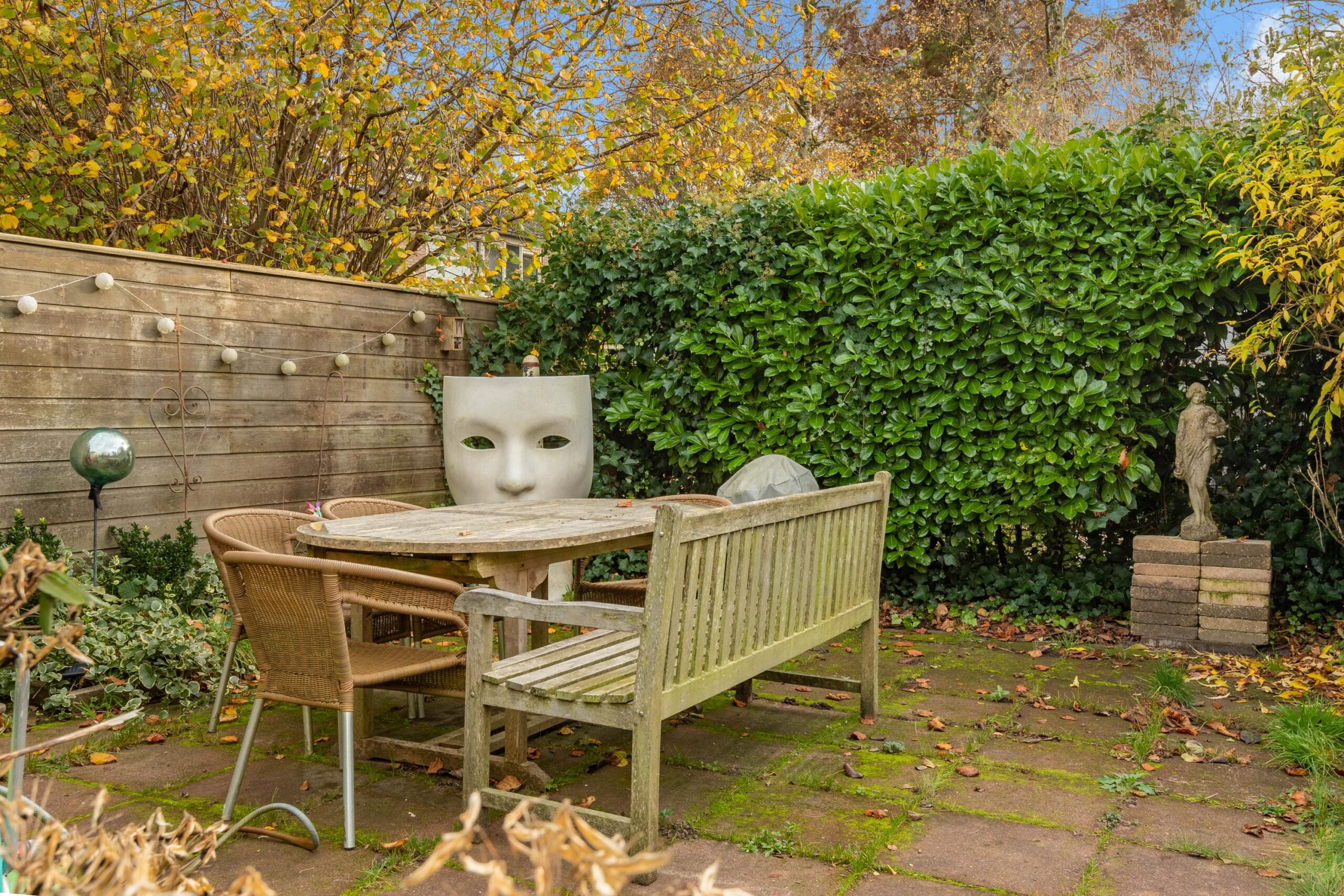 De zonnige achtertuin ligt op het zuiden en is verrassend diep. Dankzij de verschillende hoekjes is er ruimte voor bijvoorbeeld een trampoline, een grote eettafel voor lange BBQ-avonden en een fijne zithoek voor een kop koffie in de ochtendzon.