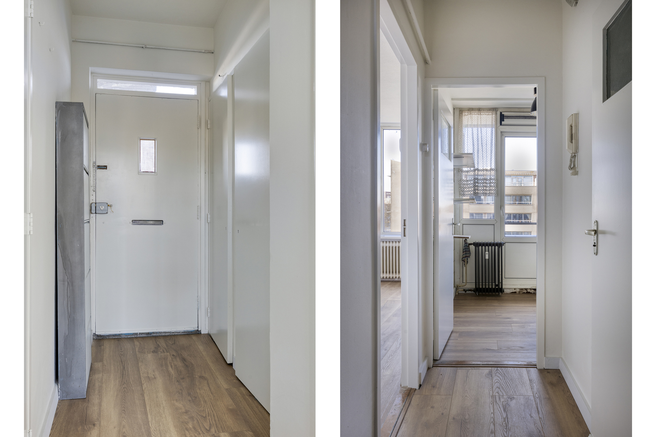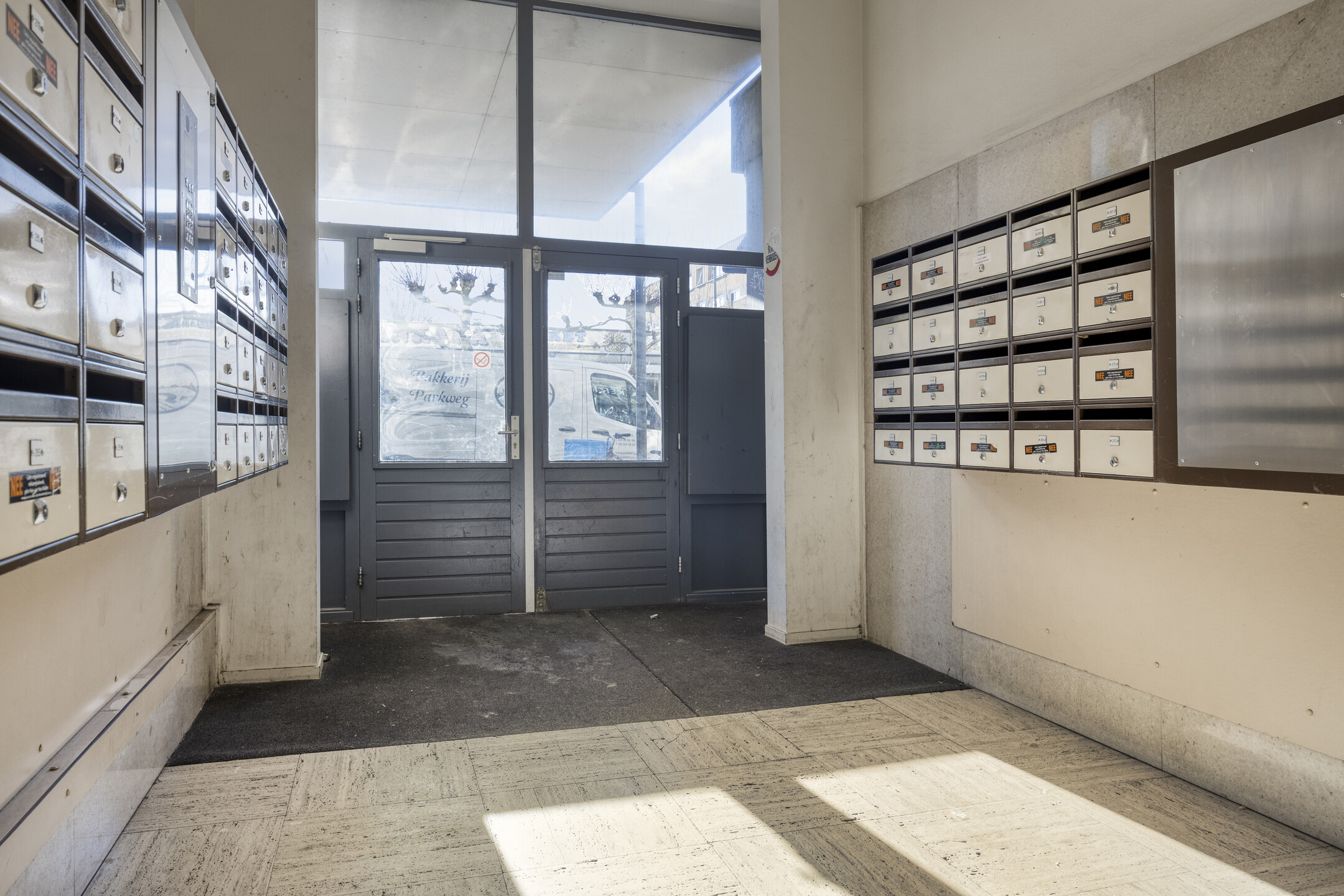 Via de centrale entree met bellentableau en brievenbussen bereik je het appartementencomplex, dat beschikt over een lift. De woning ligt op de bovenste verdieping. De entree geeft toegang tot vrijwel alle vertrekken en beschikt over een meterkast en praktische inpandige kast. De woonkamer is licht dankzij de raampartijen aan beide zijden van de woning en beschikt eveneens over een handige bergkast.