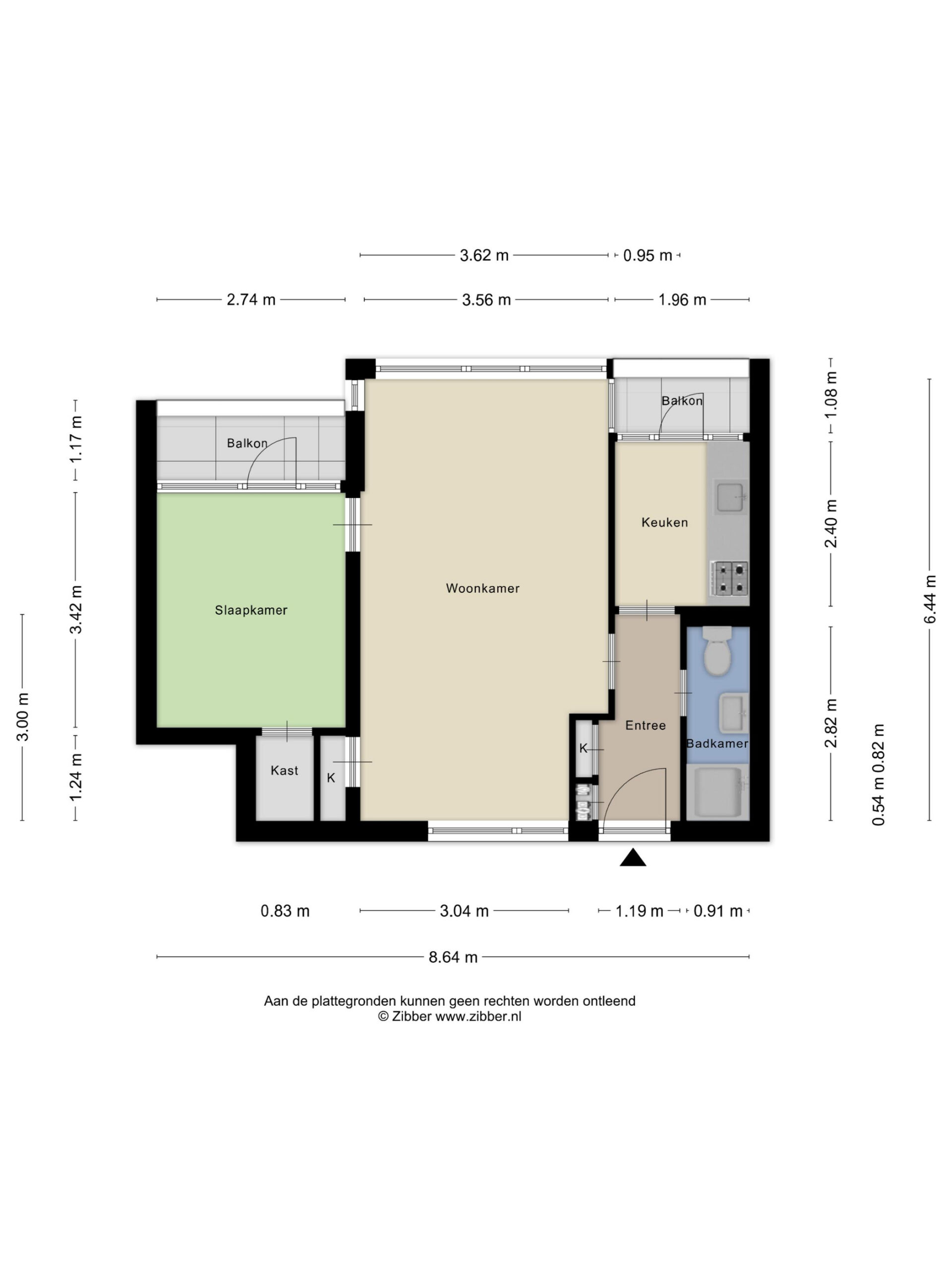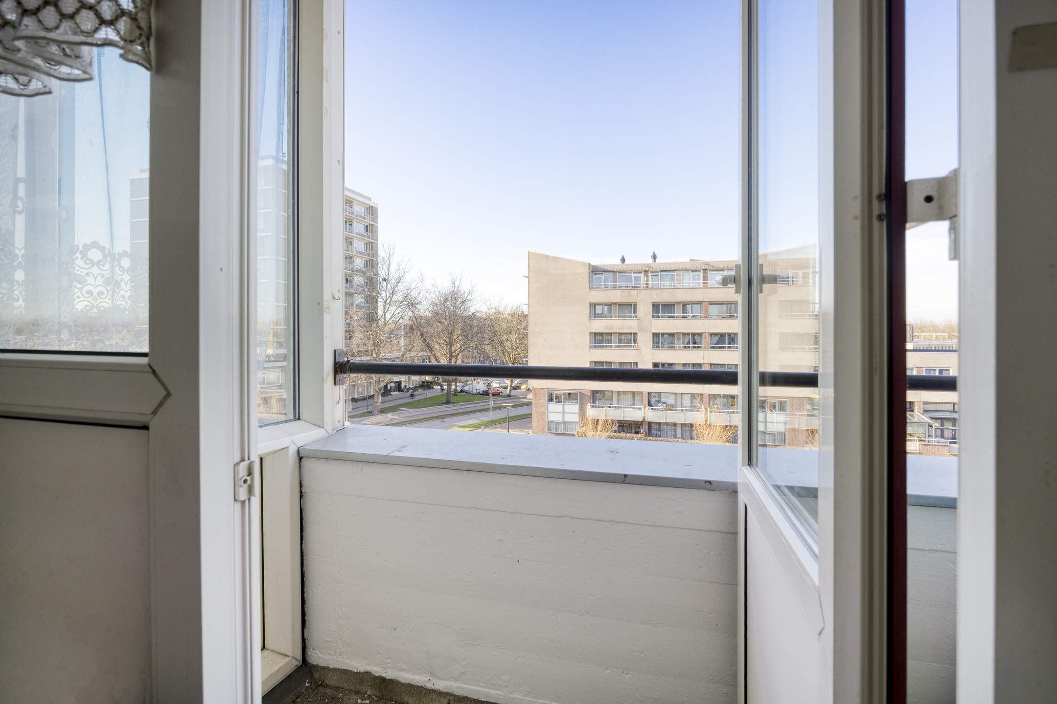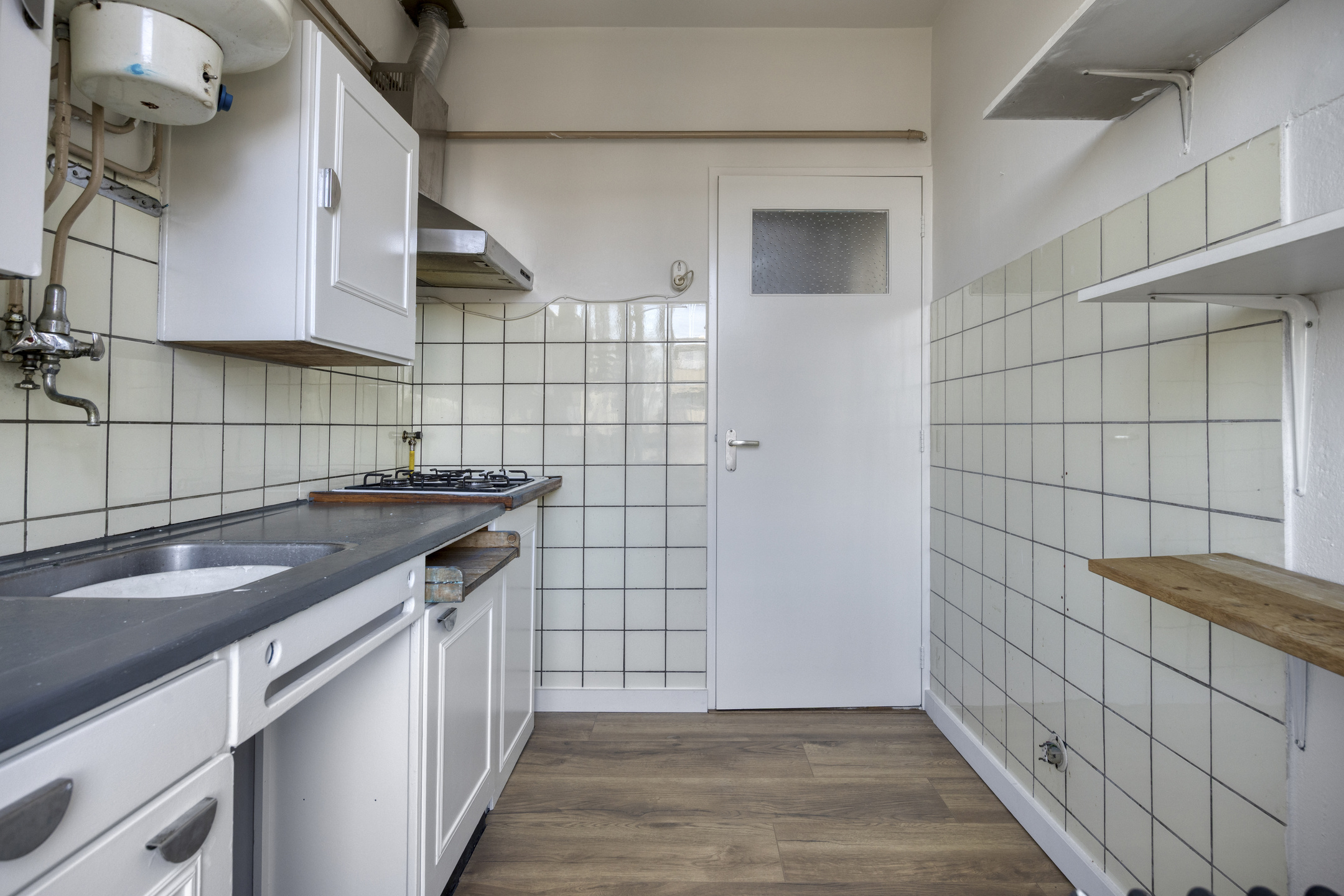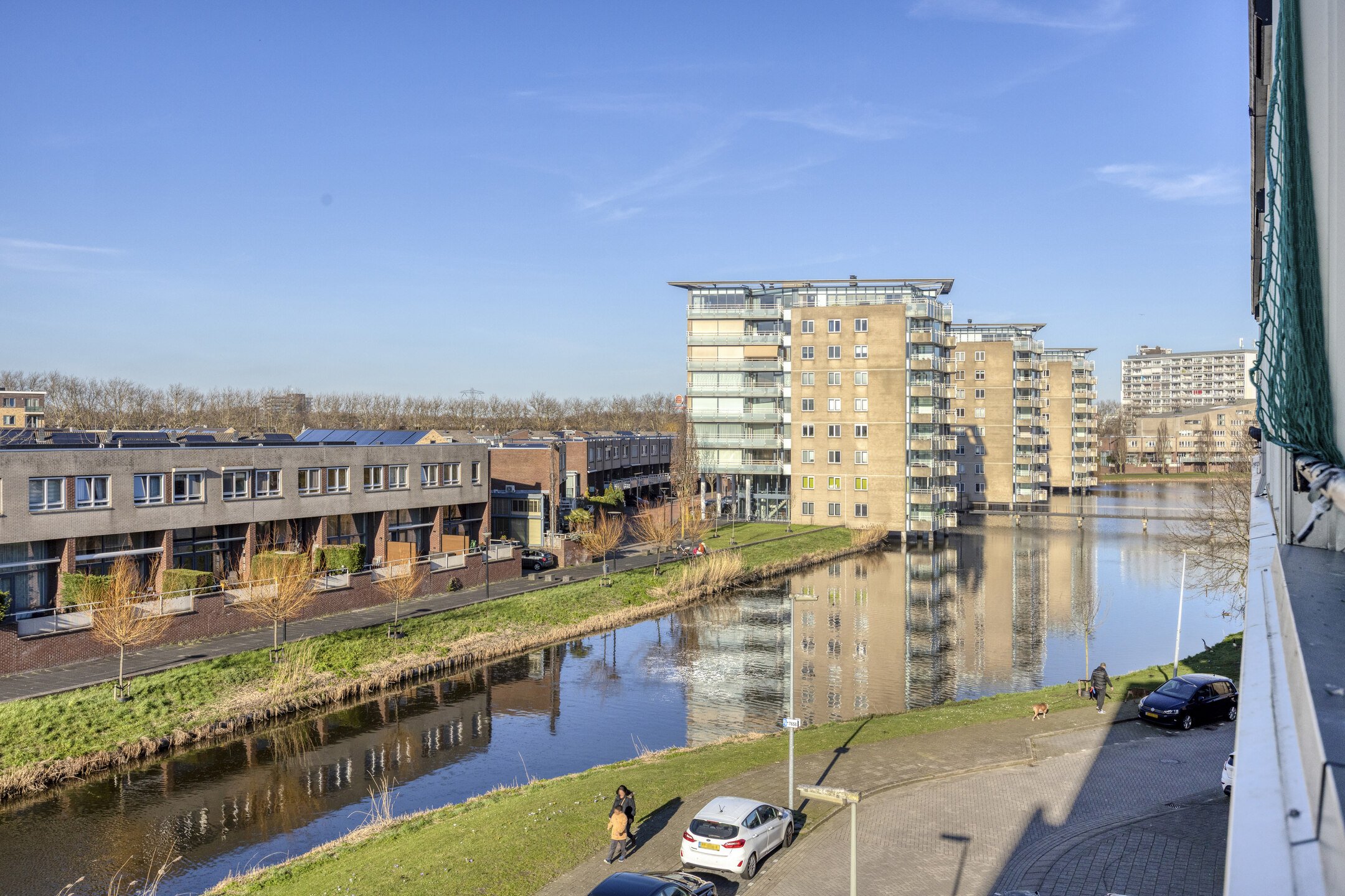 De slaapkamer is van goed formaat en biedt toegang tot het grootste balkon met vrij uitzicht over de voorgelegen vijver. De separate keuken geeft toegang tot het tweede balkon. Beide balkons liggen op het zonnige zuidwesten. De badkamer is functioneel maar gedateerd, waardoor je de mogelijkheid hebt de woning geheel naar eigen smaak te moderniseren.