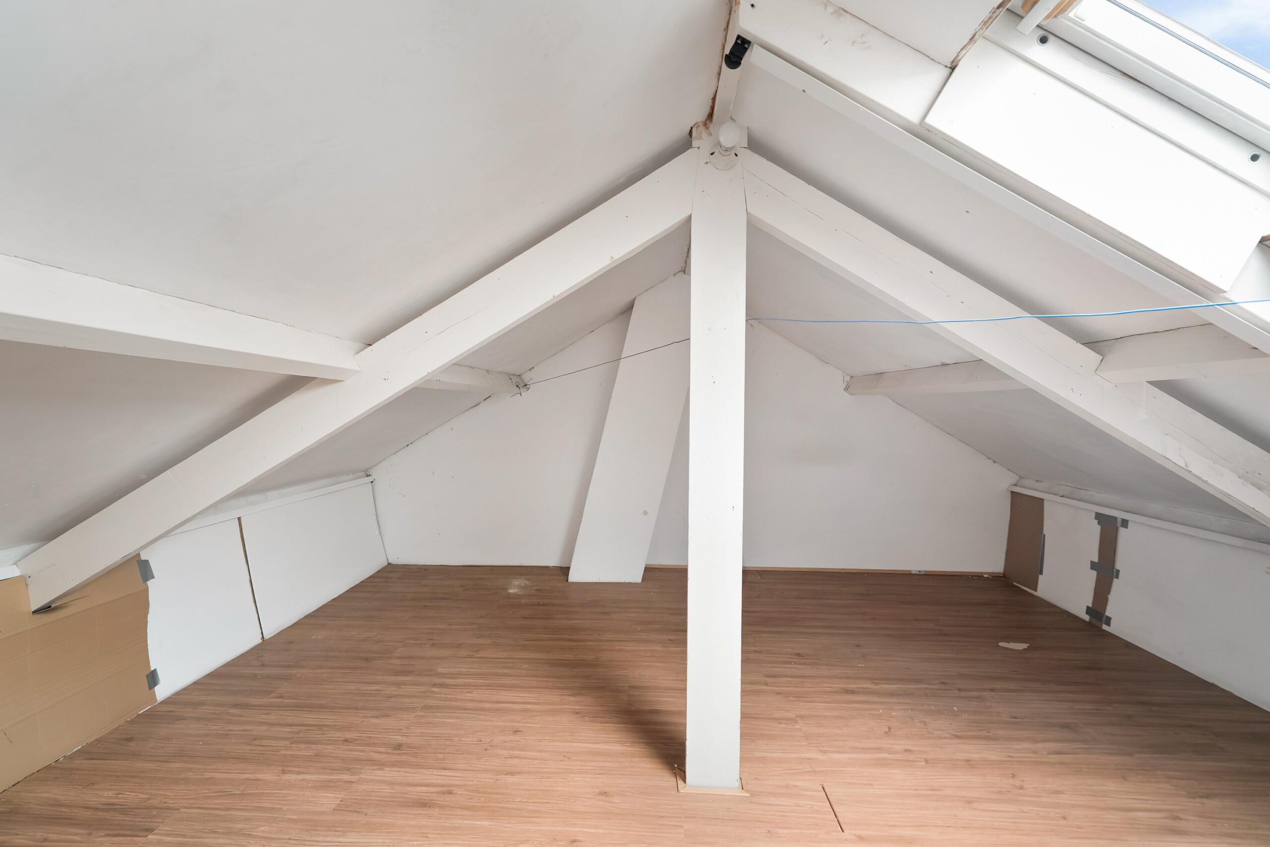De tweede vaste trap leidt naar zolder, hier is nog een slaapkamer, ideaal in te richten als werk of hobby kamer. De woning beschikt over energielabel D, wat aanknopingspunten biedt voor verdere verduurzaming, bijvoorbeeld met isolatie of zonnepanelen.