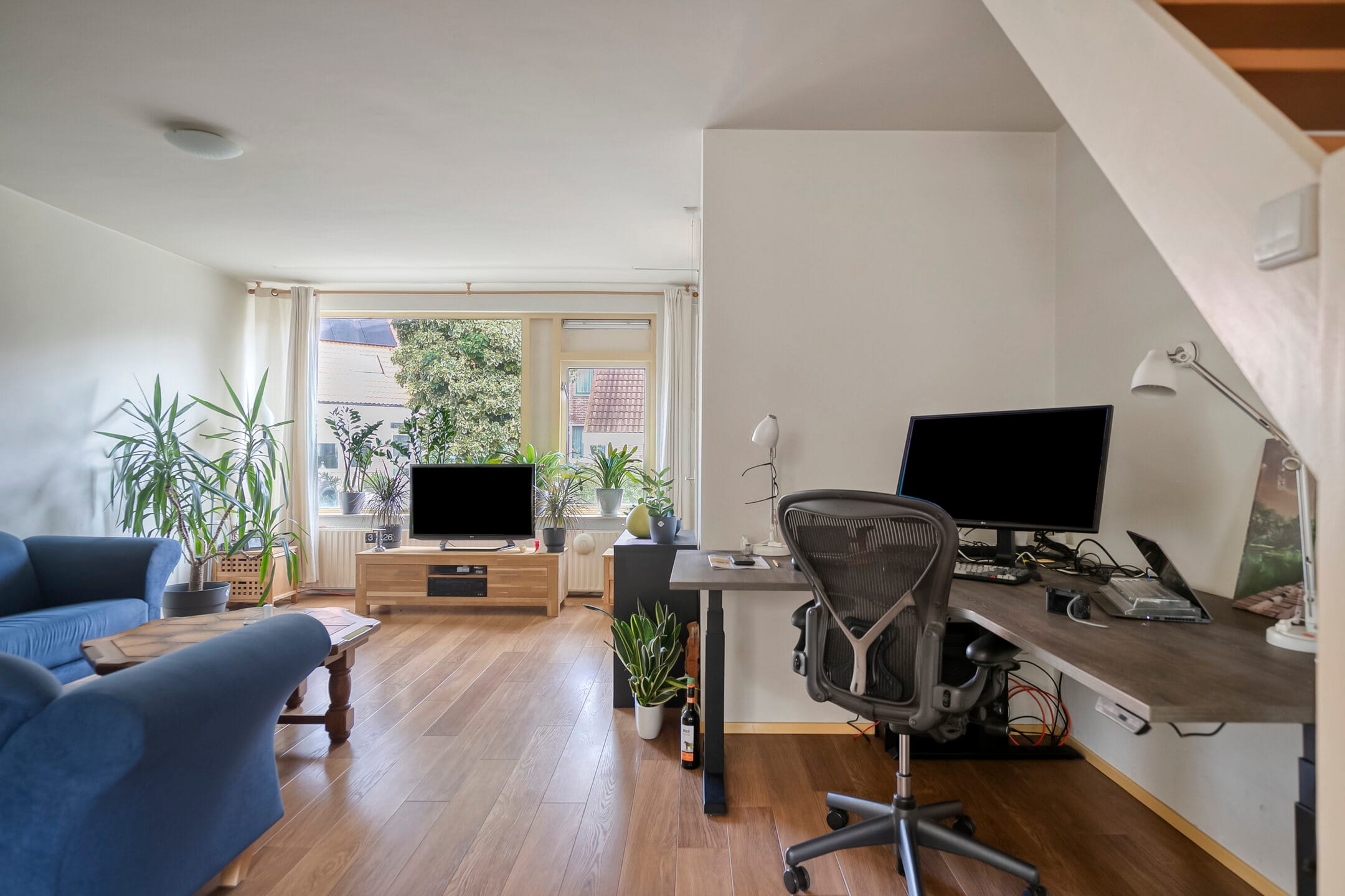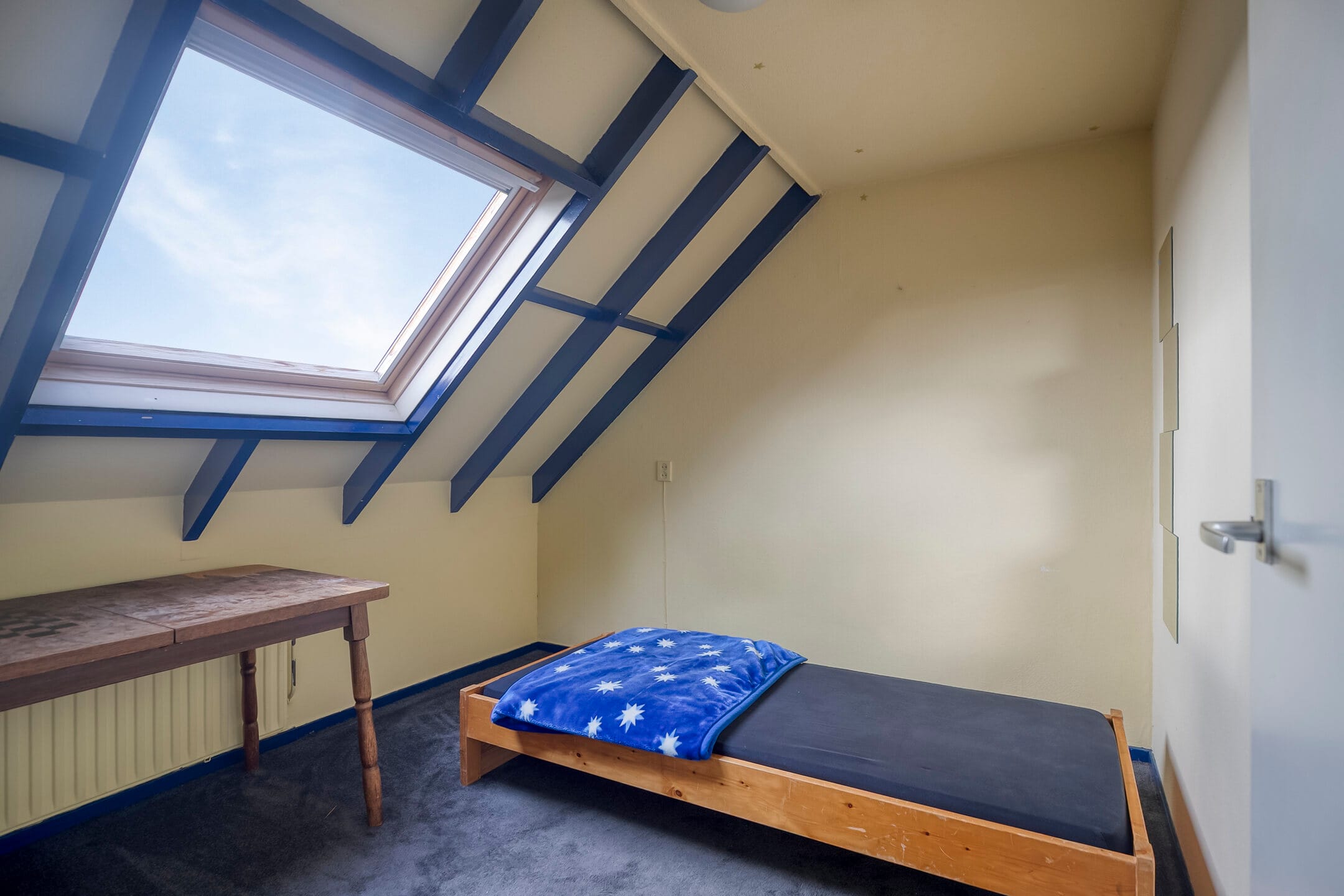 De tweede verdieping is verrassend ruim en herbergt nog twee slaapkamers, beide met grote dakramen en karakteristieke schuine wanden. De originele houten balken zorgen hier voor een sfeervol accent. Op de voorzolder vind je de aansluitingen voor de wasmachine en droger, evenals extra bergruimte. De grootste kamer beschikt over een wastafel en kan naar wens worden ingericht als werkruimte, muziekkamer of hobbykamer.