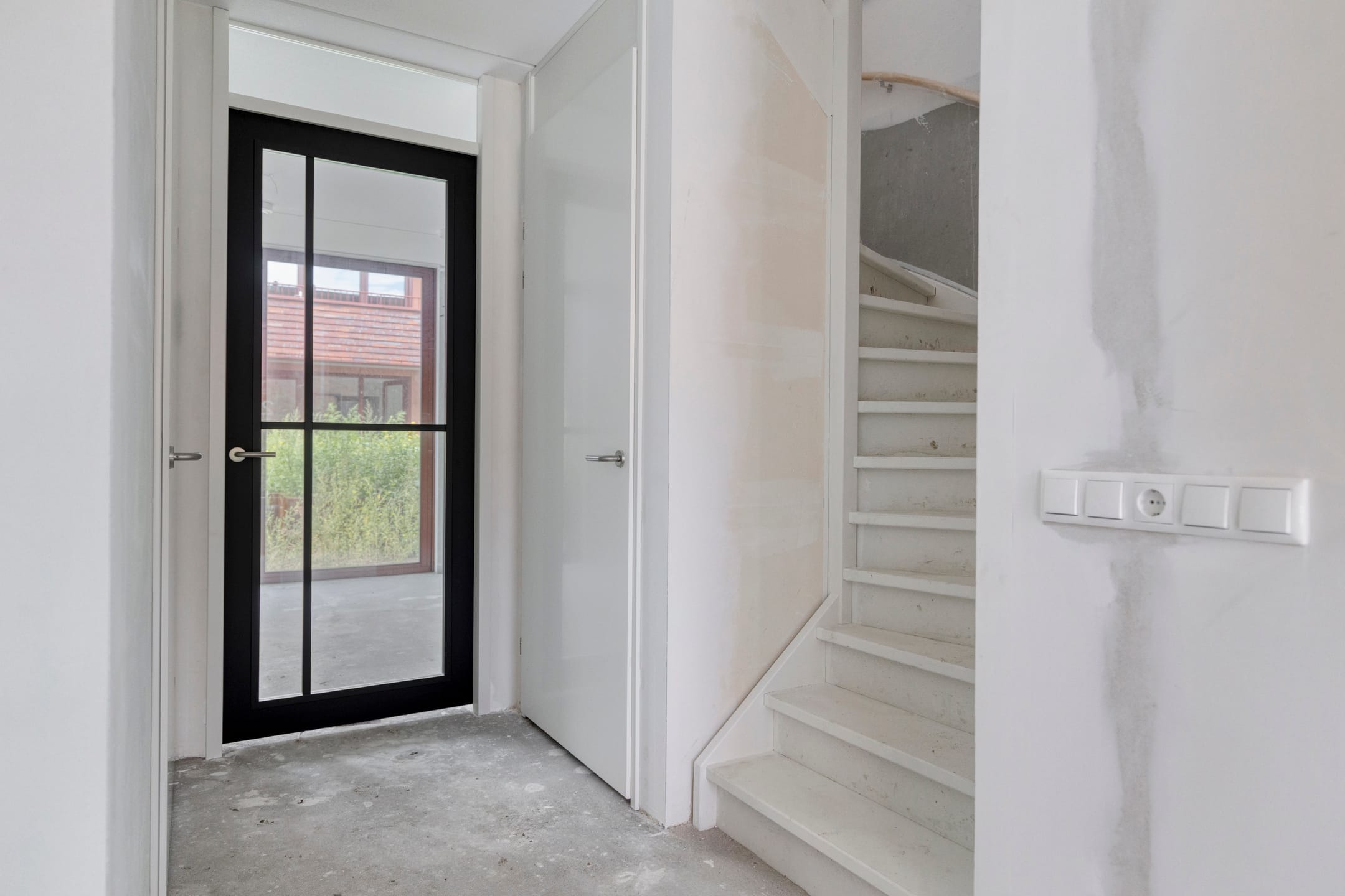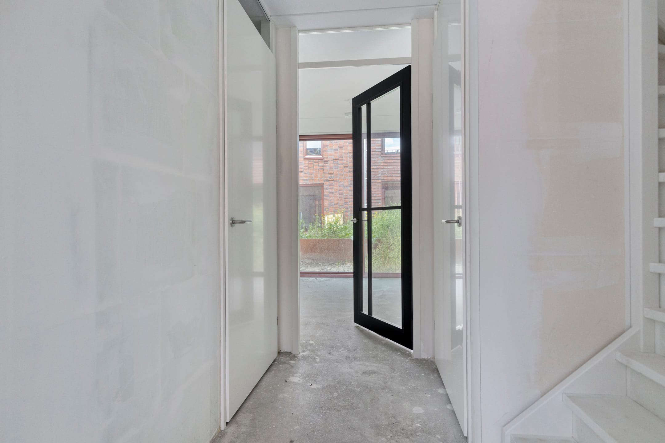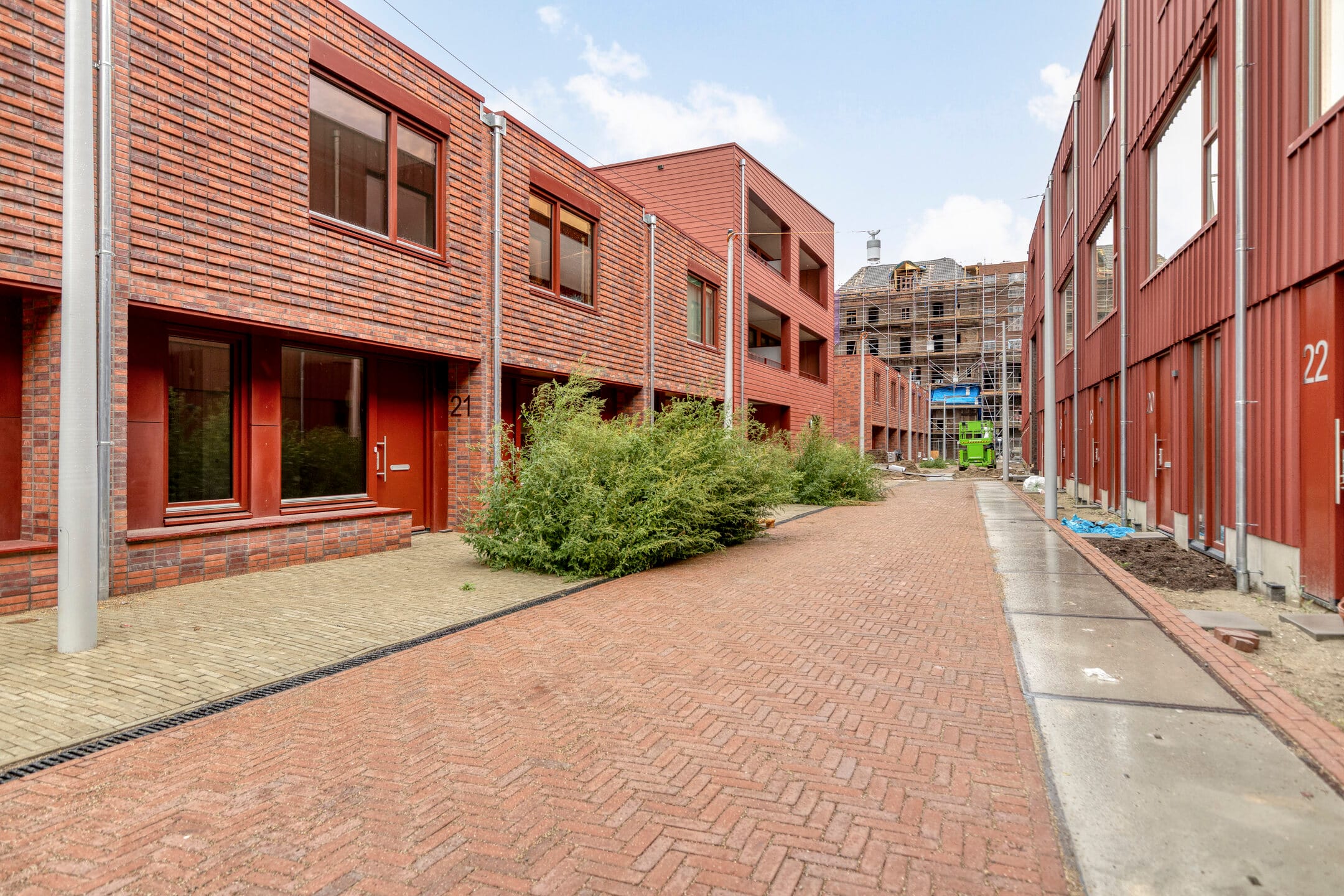 De woning heeft aardse roodtinten en grote raampartijen aan de voorzijde. Via de voorkant van de woning stap je zo de open keuken binnen. Vanuit de keuken kom je via een gang, met separaat toilet, kastruimte en trap naar de 1e verdieping, in de woonkamer waardoor de ruimtes toch open met elkaar verbonden zijn. Op zomerse dagen zet je de grote schuifpui, die aan de woonkamer grenst, wagenwijd open. Vanuit de woonkamer stap je ’s ochtends het terras aan de achterkant op om te genieten van jouw eerste kopje koffie!