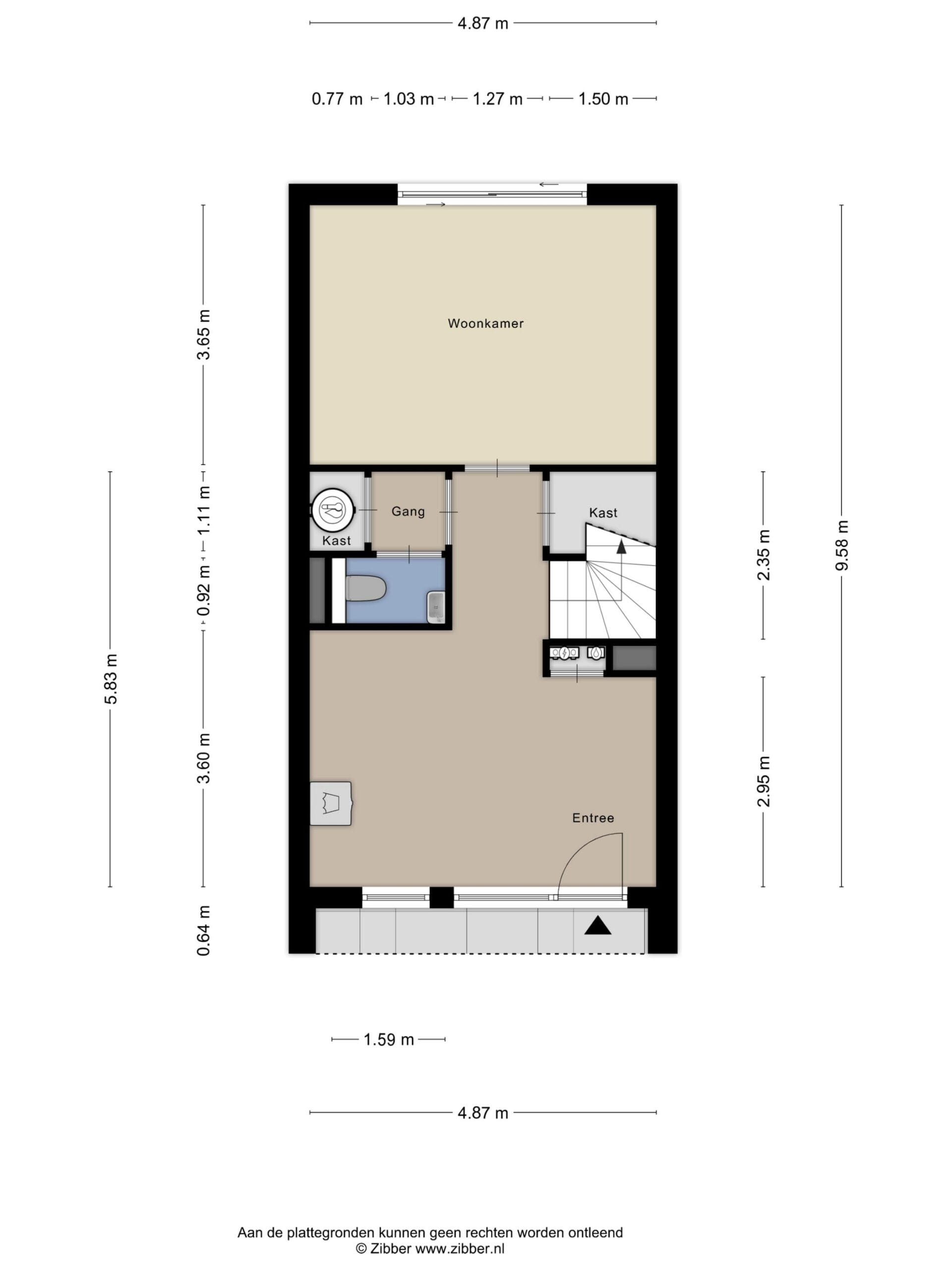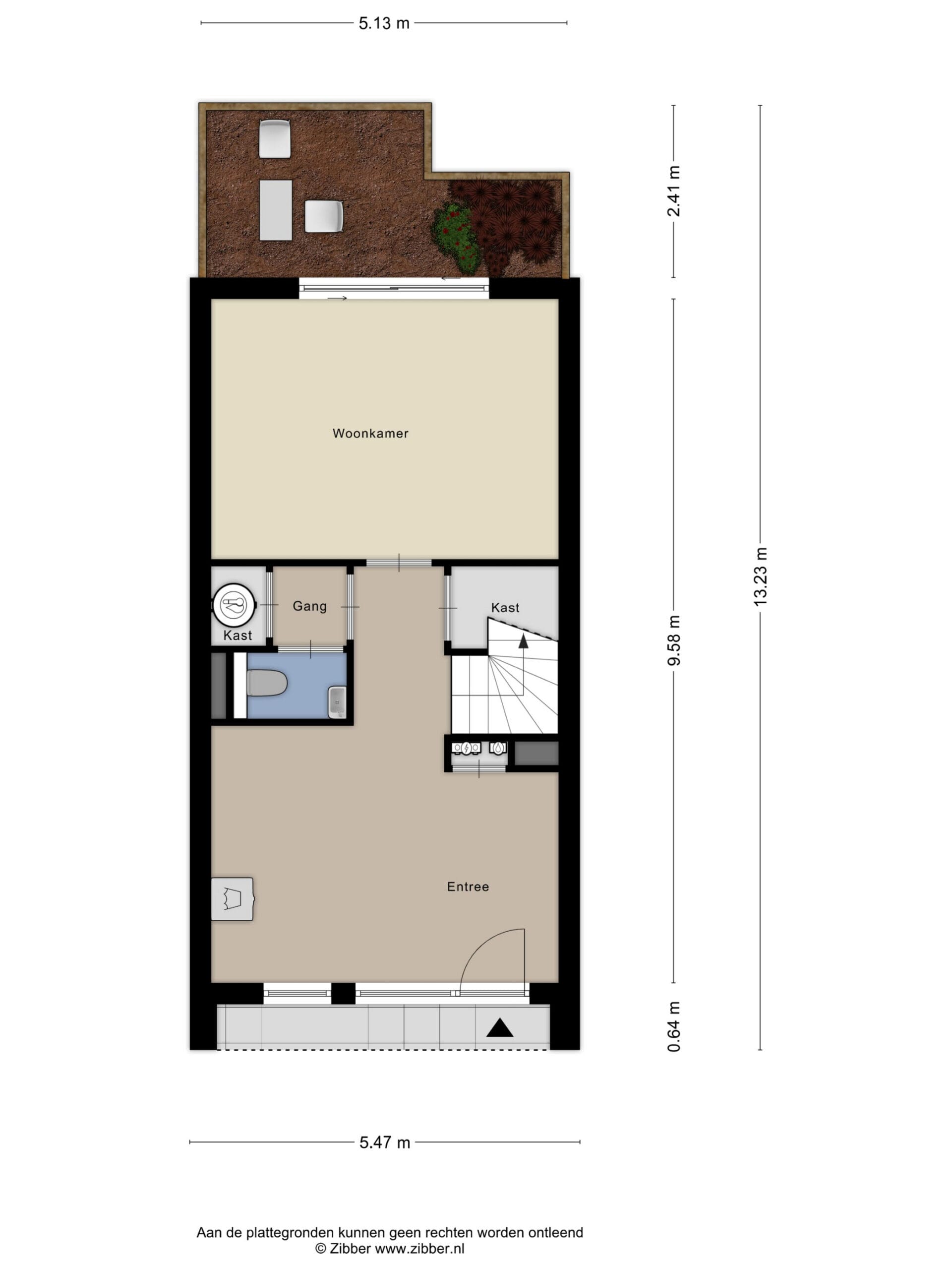 The house features earthy red tones and large windows at the front. From the front of the house, you step straight into the open-plan kitchen. From the kitchen, a hallway with a separate toilet, closet space, and stairs to the first floor leads to the living room, creating an open connection between the spaces. On summer days, you can open the large sliding doors adjacent to the living room. From the living room, step out onto the terrace at the back in the morning to enjoy your first cup of coffee!