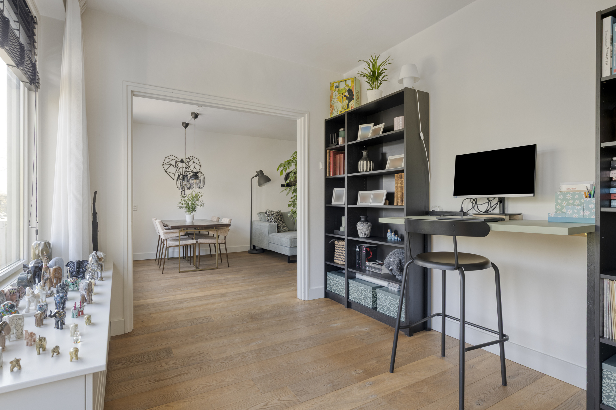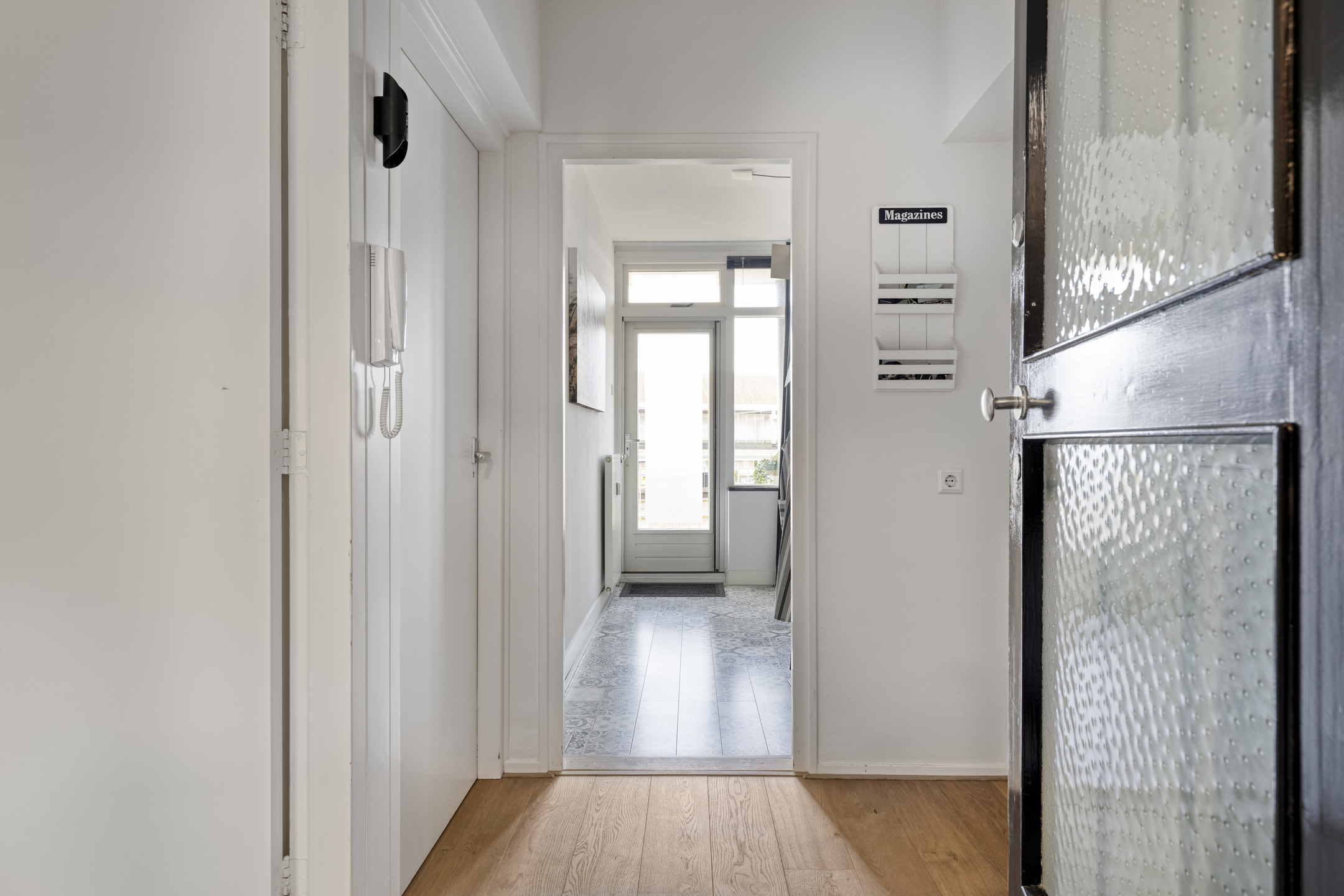 Upon entering via the hall and staircase, you take the stairs to the third floor where the apartment is located. In the hall, you have access to the bathroom, the bedroom, and the spacious living room with an adjoining area currently used as an office, but which can easily be converted back into a second bedroom. The living room offers a sea of ??space, a small balcony, and a pleasant amount of natural light. The maintenance here is truly superb. Furthermore, the home features a lovely eat-in kitchen that is fully equipped. On the south side of the home, you have a sun-drenched balcony with room for a large lounge set, as well as a stunning view.