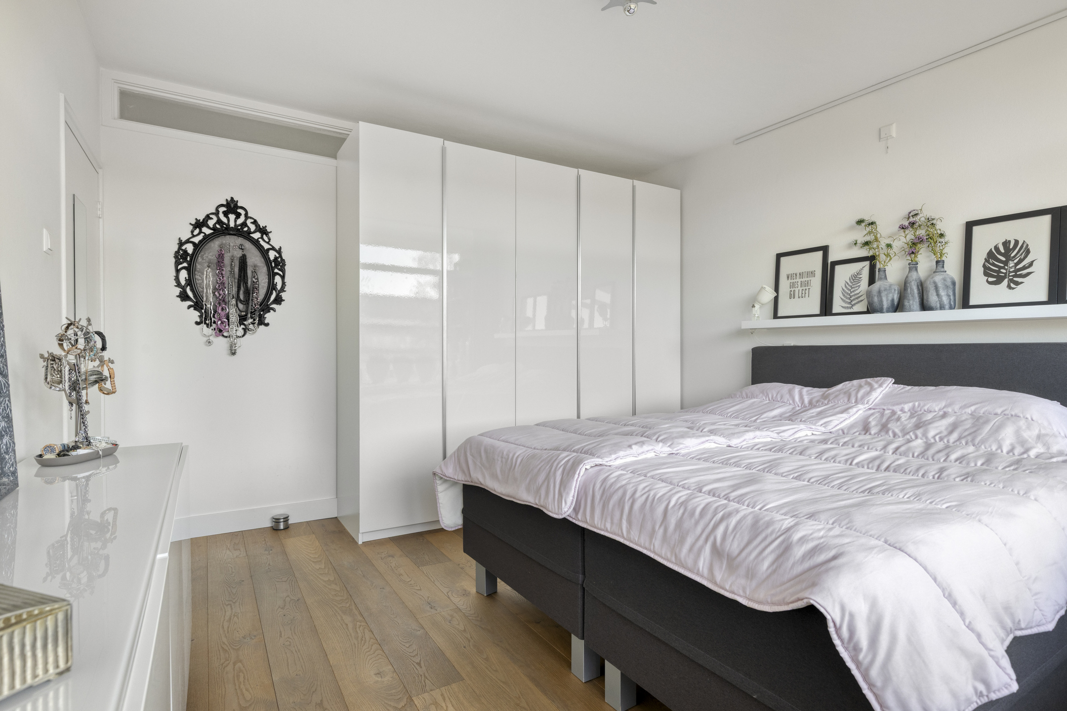 Ook de slaapkamer is royaal met ruimte voor een king-size bed, grote kastenwand en tevens een schitterende raampartij, wat deze ruimte extra speciaal maakt.