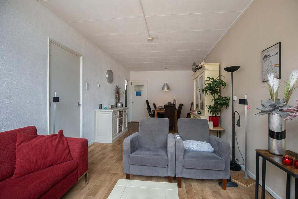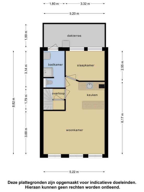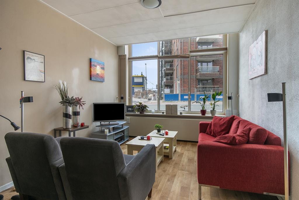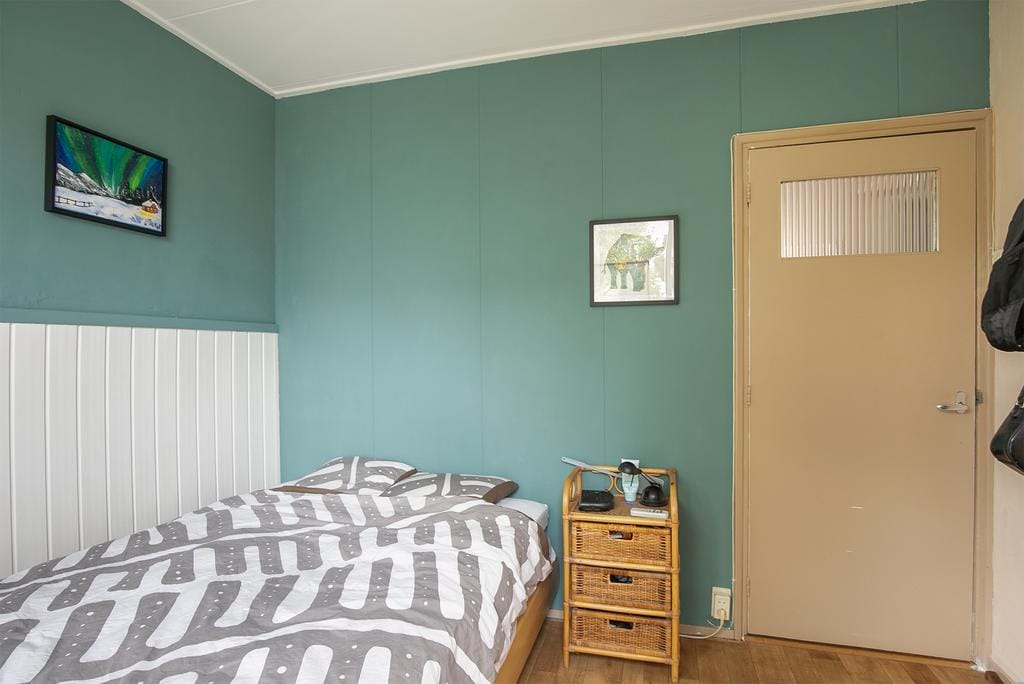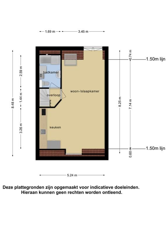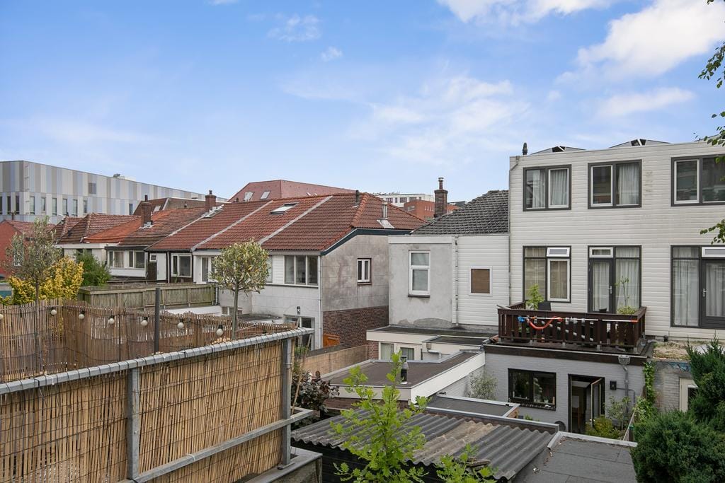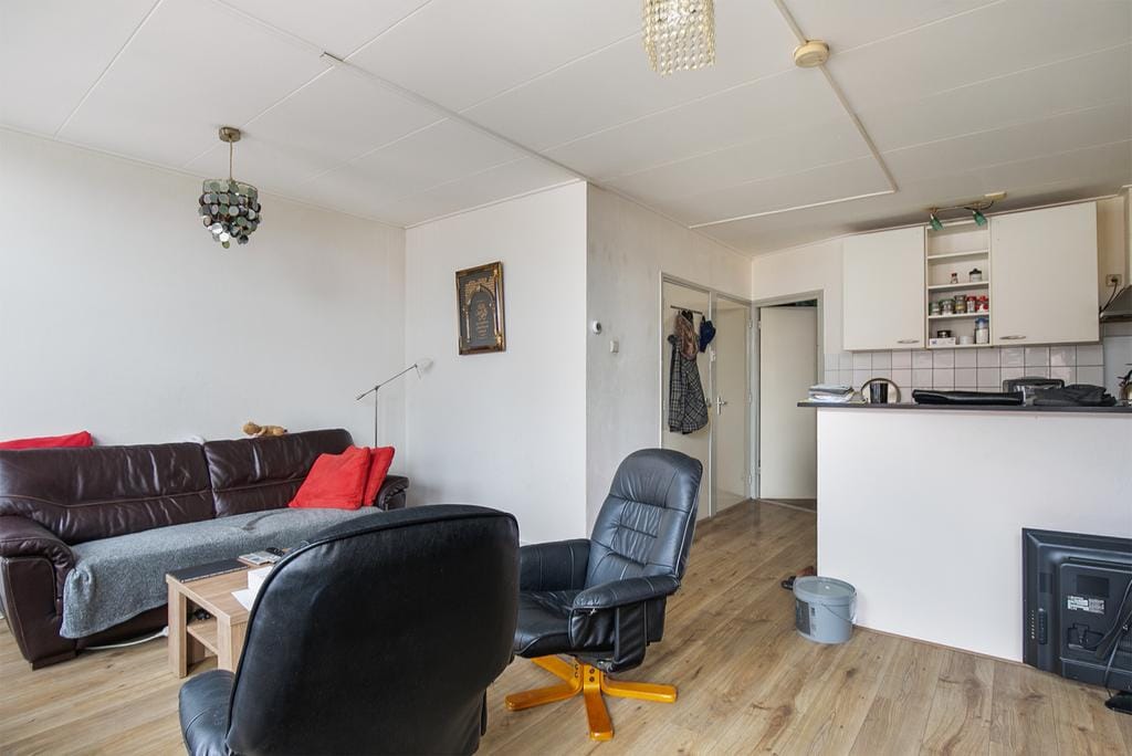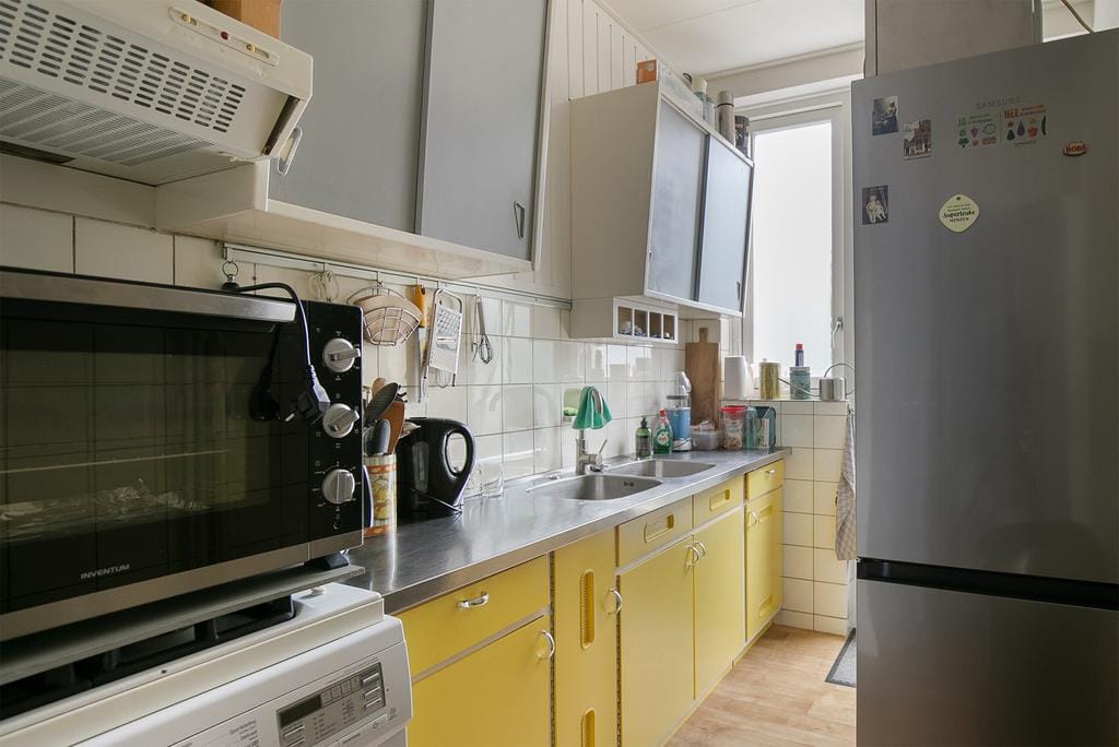 Bij binnenkomst wordt u verwelkomd in de sfeervolle woonkamer met open keuken. De keuken is uitgerust met alle benodigde voorzieningen en beschikt over twee handige aanrechten voor extra kookoppervlak. Dankzij de grote ramen die reiken tot aan het plafond, baadt de woonkamer in natuurlijk licht en creëren de fraai geplaatste radiatorkasten een warme sfeer. Langs de keuken vindt u een knusse slaapkamer, waar moeiteloos een comfortabel tweepersoonsbed in past. De badkamer is goed onderhouden en biedt alles wat u nodig heeft, inclusief een inloopdouche, toilet en wasmachineaansluiting. Via de badkamer heeft u toegang tot het ruime dakterras, waar u heerlijk kunt vertoeven.