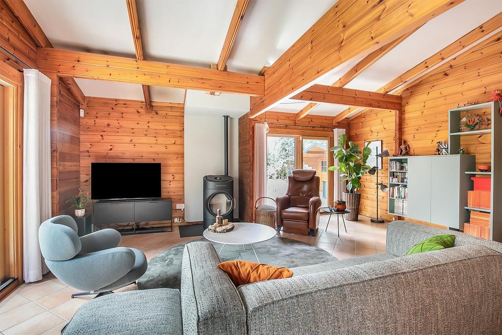 The 2023 impregnated and coated roof has been fitted with 28 owned solar panels in 2021. The house is equipped with a heat pump, including an associated 230-litre boiler with both indoor and outdoor units. The underfloor heating system allows the house to be efficiently heated and cooled, making it comfortable throughout all seasons. Moreover, a luxury pellet stove contributes to a warm and cosy atmosphere in the house. The above-mentioned installation ensures that the house is gas-free and highly energy-efficient. The entire house is double-glazed. An alarm system with smoke curtain function has been installed in the house. And to finish it off, new smoke detectors were installed in 2021.