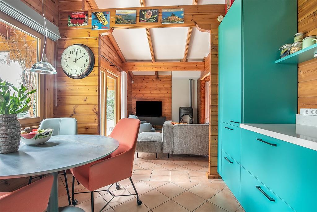 Der zweite Teil des Flurs bietet Zugang zum Badezimmer, dem ersten Schlafzimmer und dem Wohnzimmer. Das Badezimmer wurde 2021 renoviert und mit einer geräumigen, begehbaren Dusche mit Infrarot-Wärmestrahler ausgestattet. Darüber hinaus gibt es zwei Waschbecken plus Spüle und eine schwimmende Toilette. Am Ende des Flurs betreten Sie das geräumige Wohnzimmer. Durch die großzügigen Abmessungen des Wohnzimmers und das Giebeldach wirkt der Raum noch geräumiger. Vom Wohnzimmer aus haben Sie Zugang zum zweiten Schlafzimmer, der Küche und dem Garten. Der Garten ist durch zwei Schiebetüren zu erreichen. Die gute Nachricht ist, dass die Schiebetür neben der Küche noch vor dem Verkauf durch eine neue ersetzt wird. Das zweite Schlafzimmer ist das größere der beiden und bietet ausreichend Platz für ein Doppelbett und einen geräumigen Kleiderschrank.