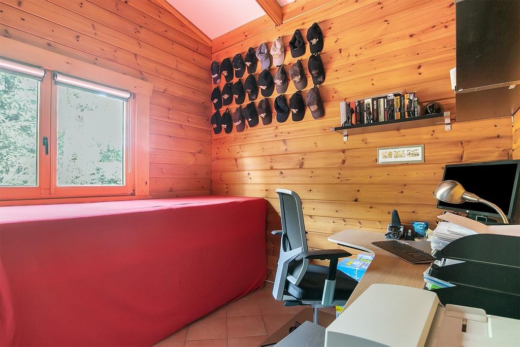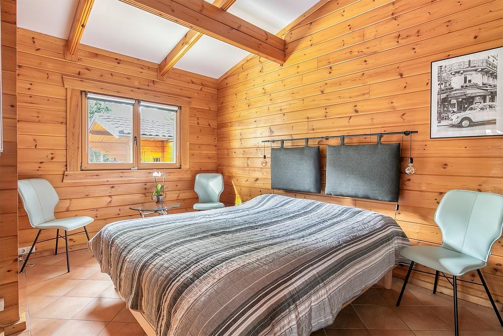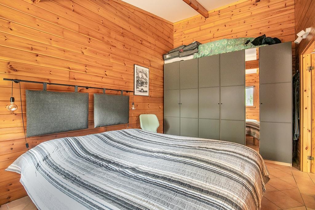 At the end of the hall, you enter the spacious living room. Thanks to the generous dimensions of the living room and the gabled roof, the room looks even more spacious. From the living room, you have access to the second bedroom, the kitchen and the garden. The garden can be accessed through the two sliding doors. The good news is that the sliding door near the kitchen will be replaced with a new one before the sale. The second bedroom is the larger of the two with enough space for a double bed and a spacious wardrobe.