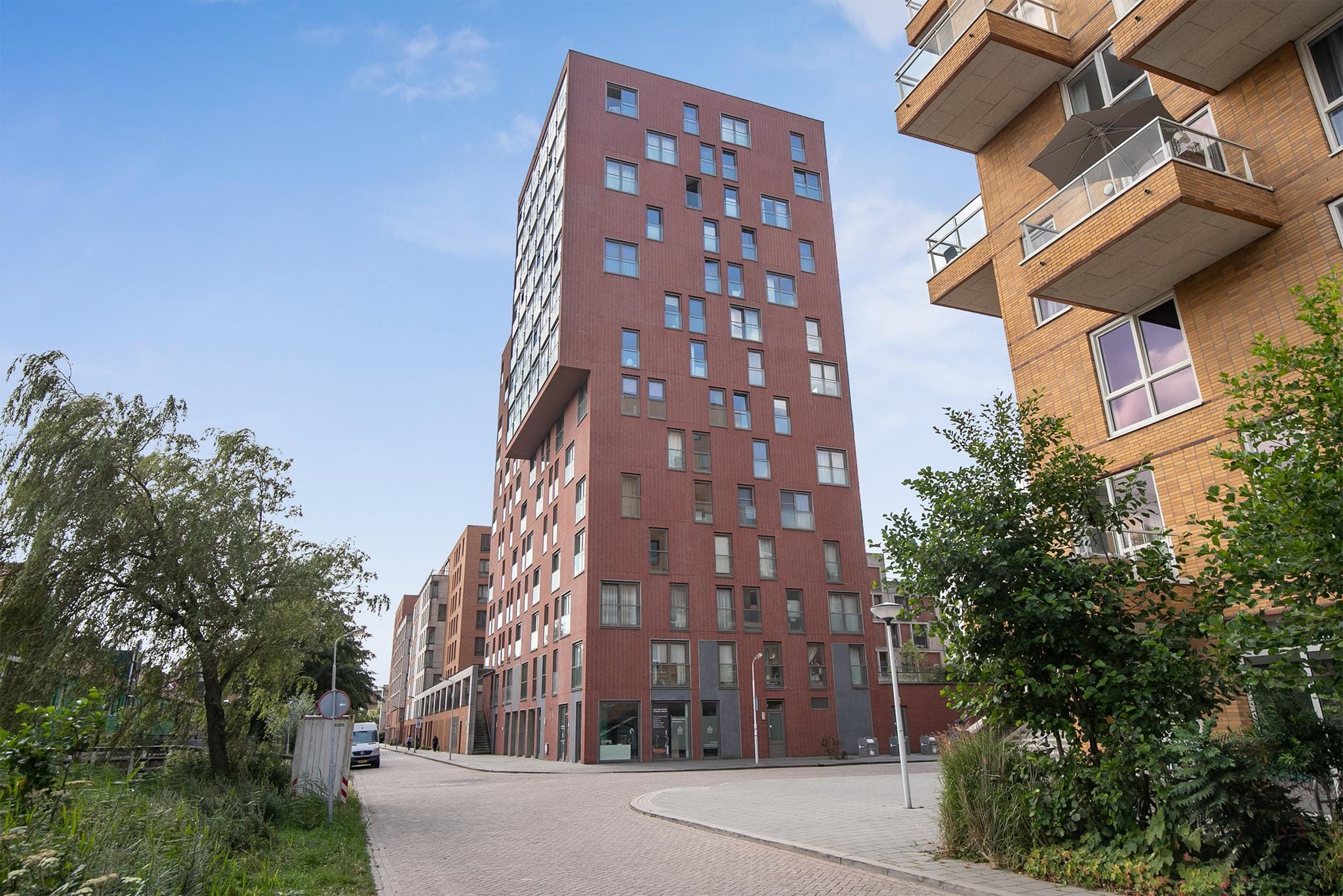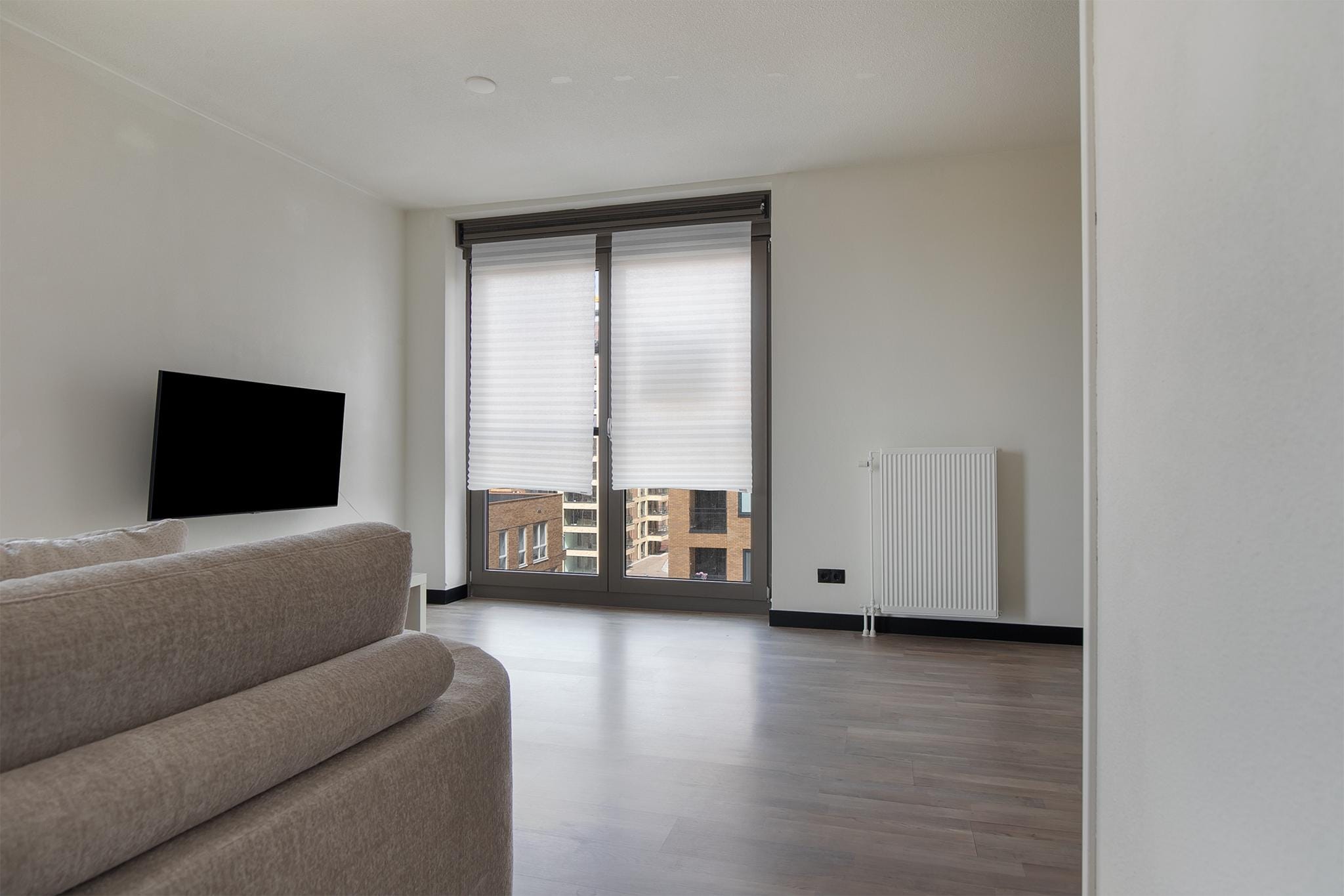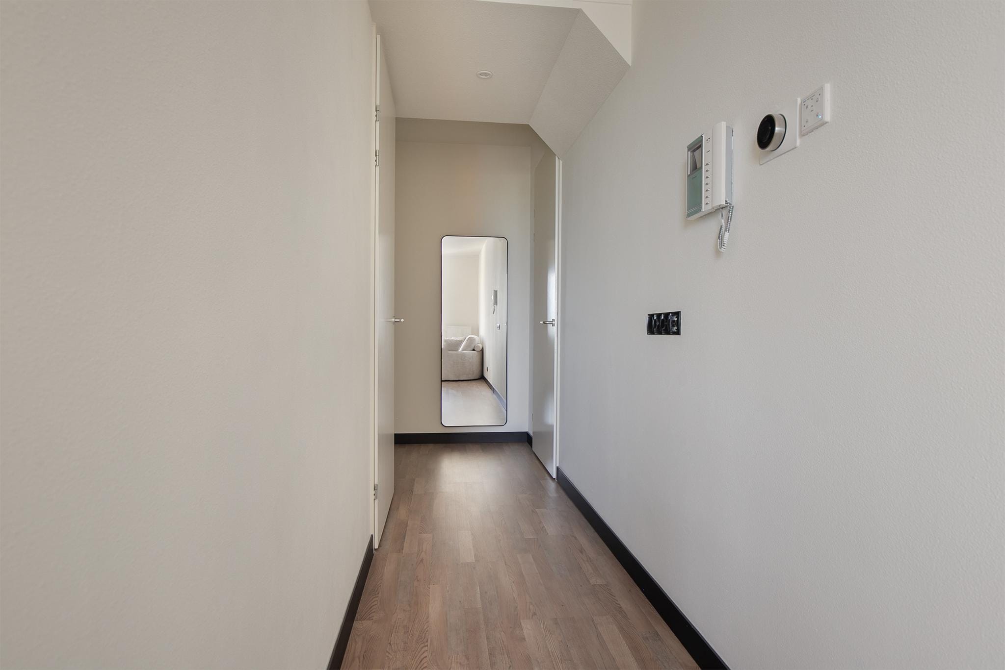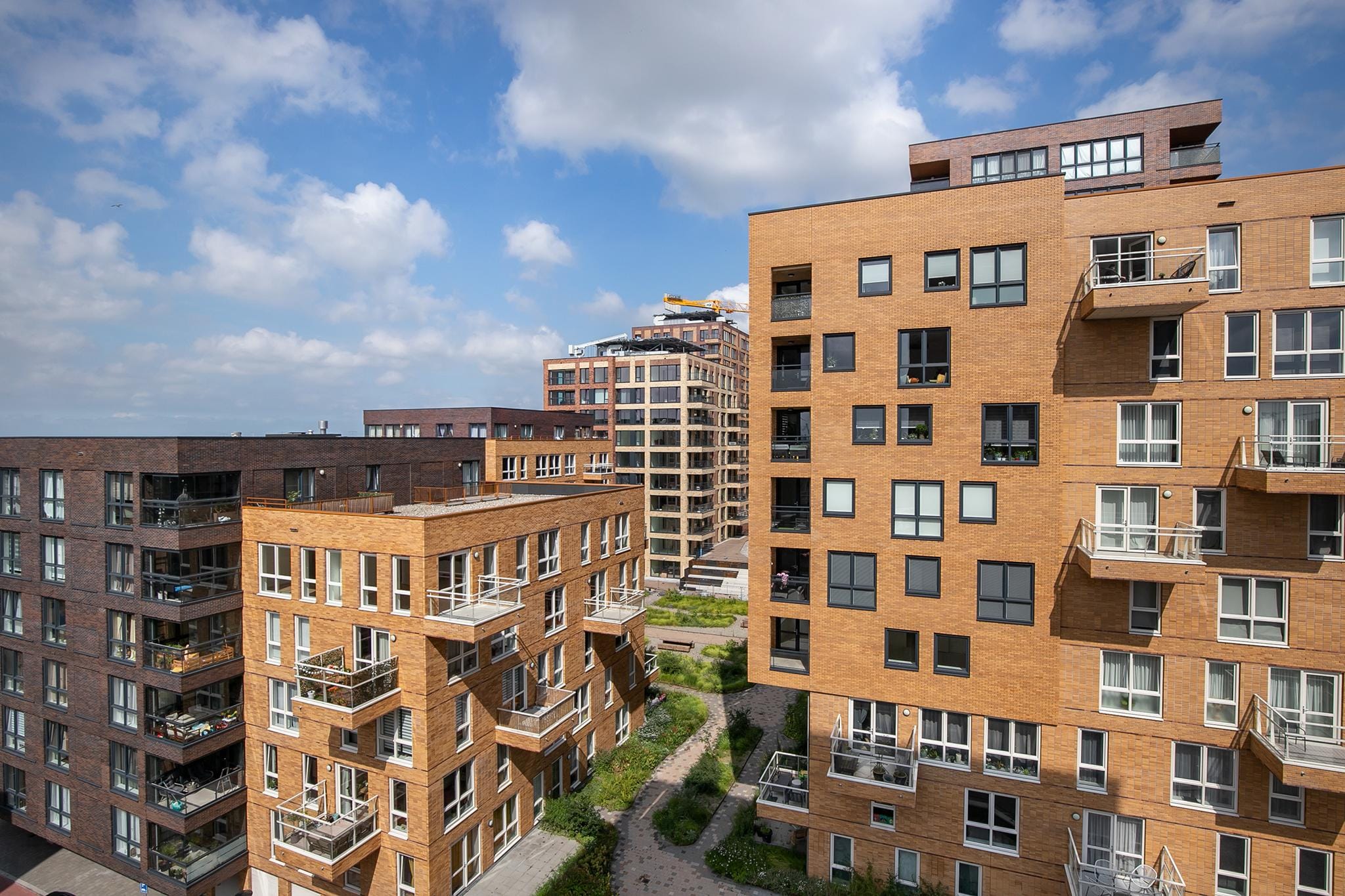 On this floor the meter cupboards are centrally placed so that space is saved for the apartment. Entrance hall with access to the bathroom with a hanging toilet, washbasin and walk-in shower, with rain shower and radiator. Second hall, technical room with central heating boiler and MV-Box, bedroom and the bright living room with modern open kitchen with various built-in appliances. The living room has two double doors with a great view over Zaandam. And there is a large shared roof terrace on the 12th floor, where you can enjoy the sun or a BBQ or a cool drink in the summer!