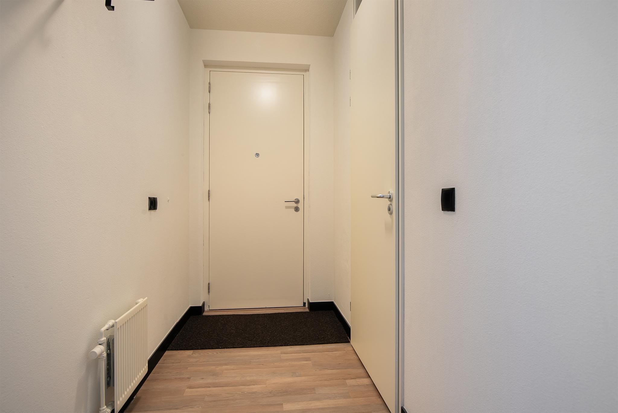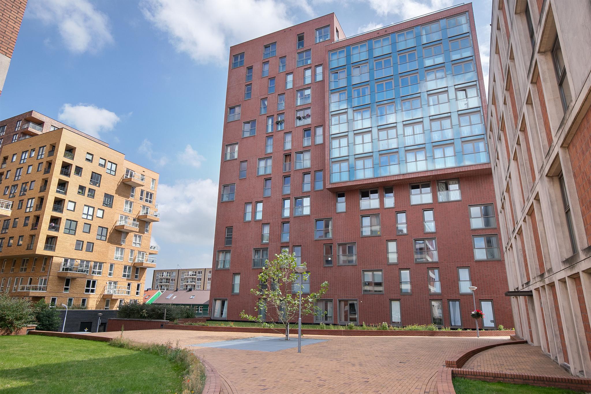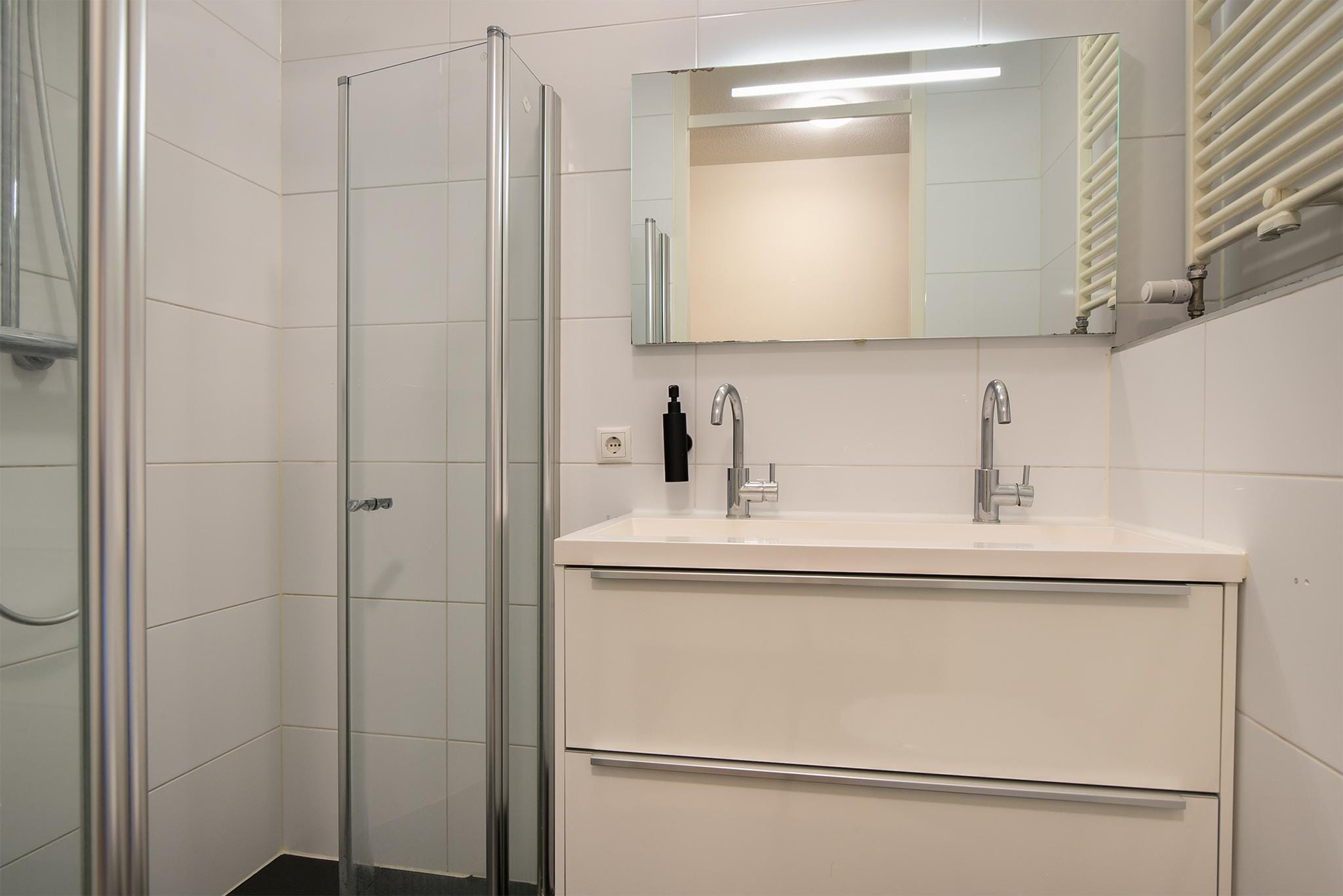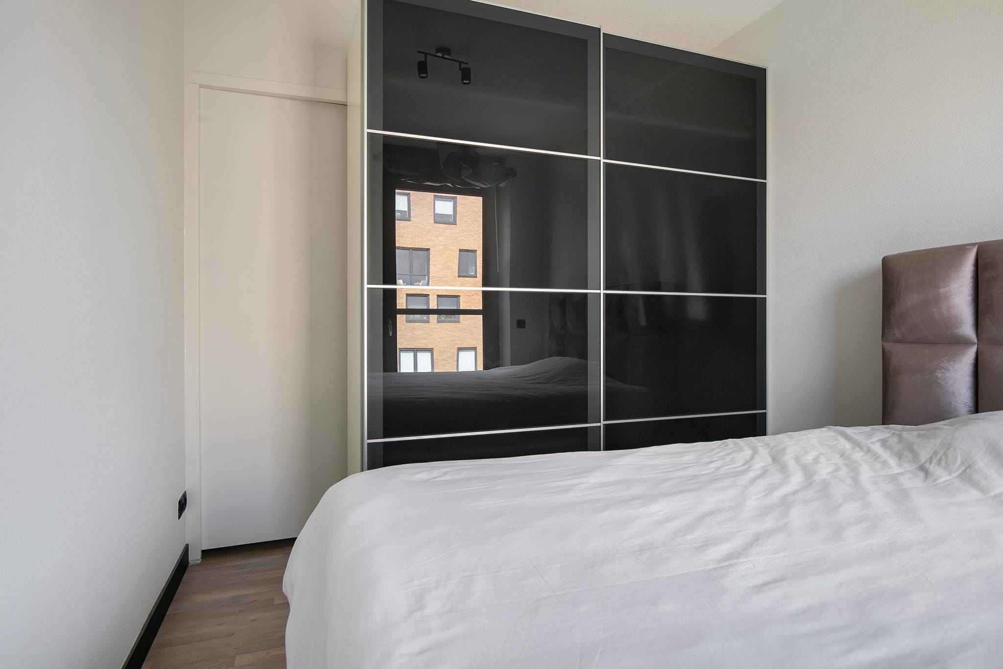 On this floor the meter cupboards are centrally placed so that space is saved for the apartment. Entrance hall with access to the bathroom with a hanging toilet, washbasin and walk-in shower, with rain shower and radiator. Second hall, technical room with central heating boiler and MV-Box, bedroom and the bright living room with modern open kitchen with various built-in appliances. The living room has two double doors with a great view over Zaandam. And there is a large shared roof terrace on the 12th floor, where you can enjoy the sun or a BBQ or a cool drink in the summer!