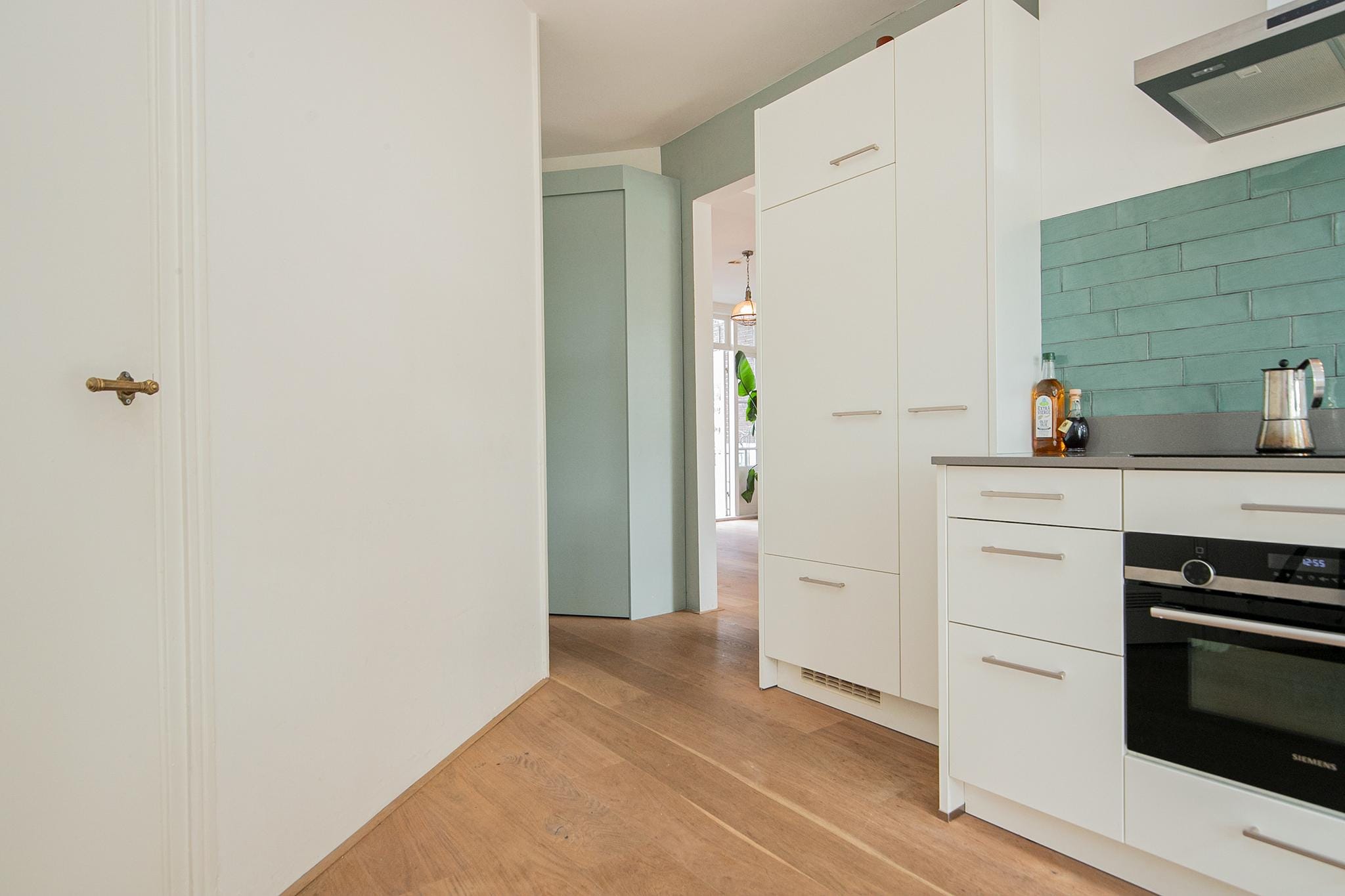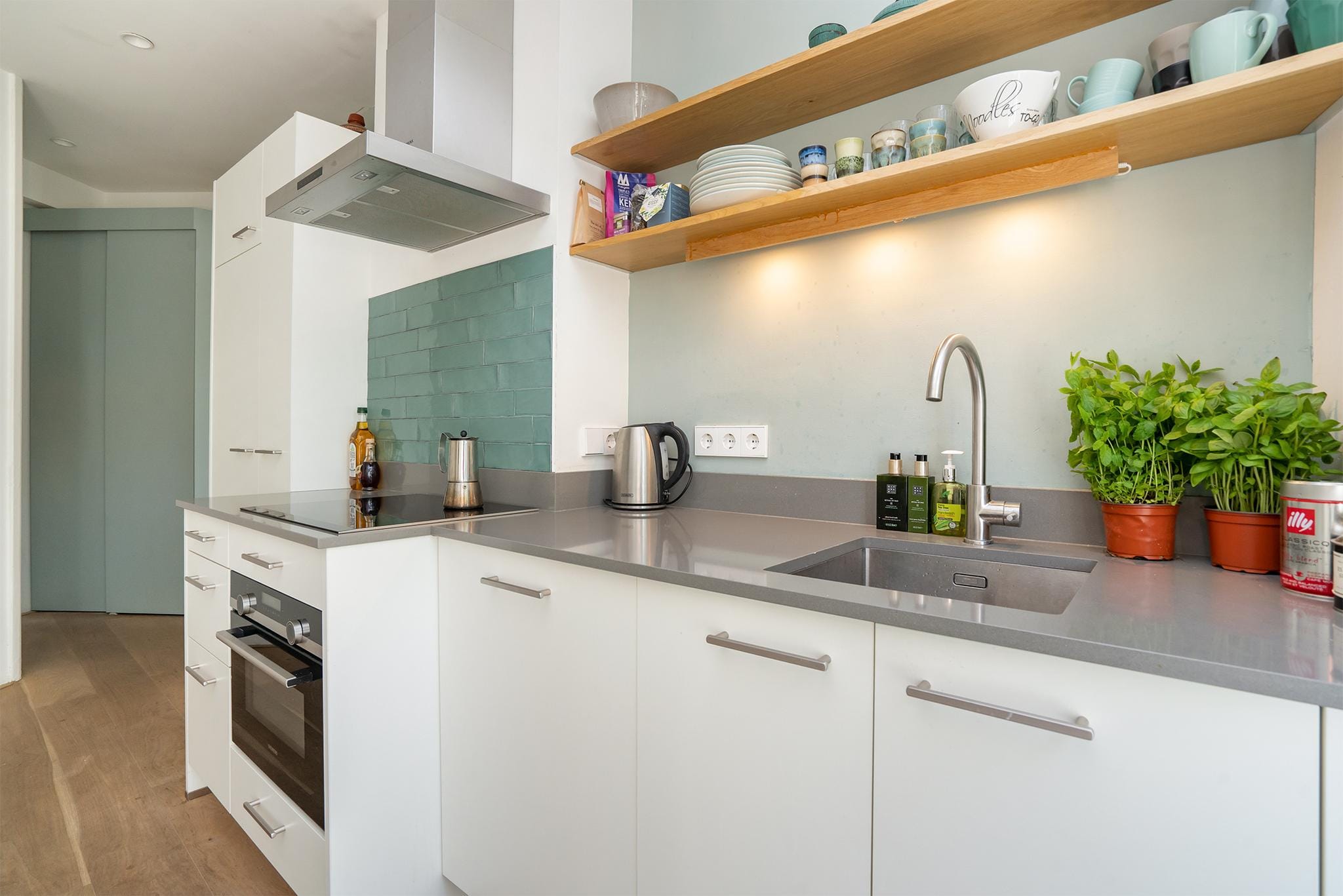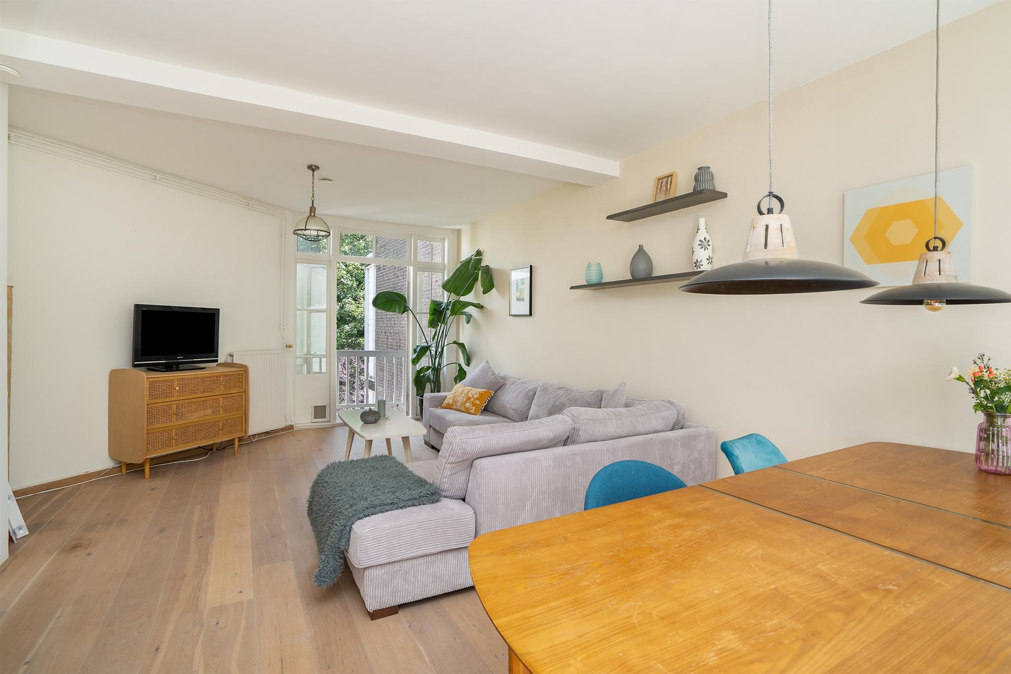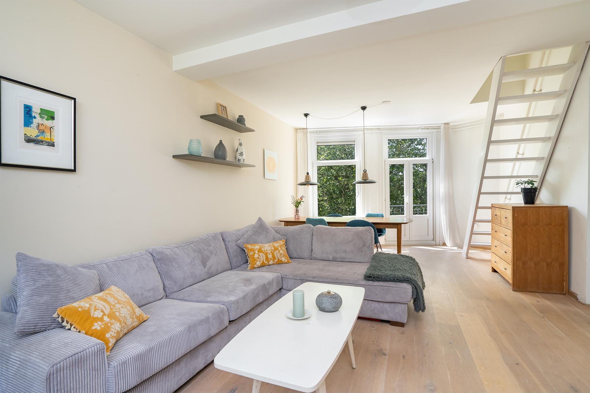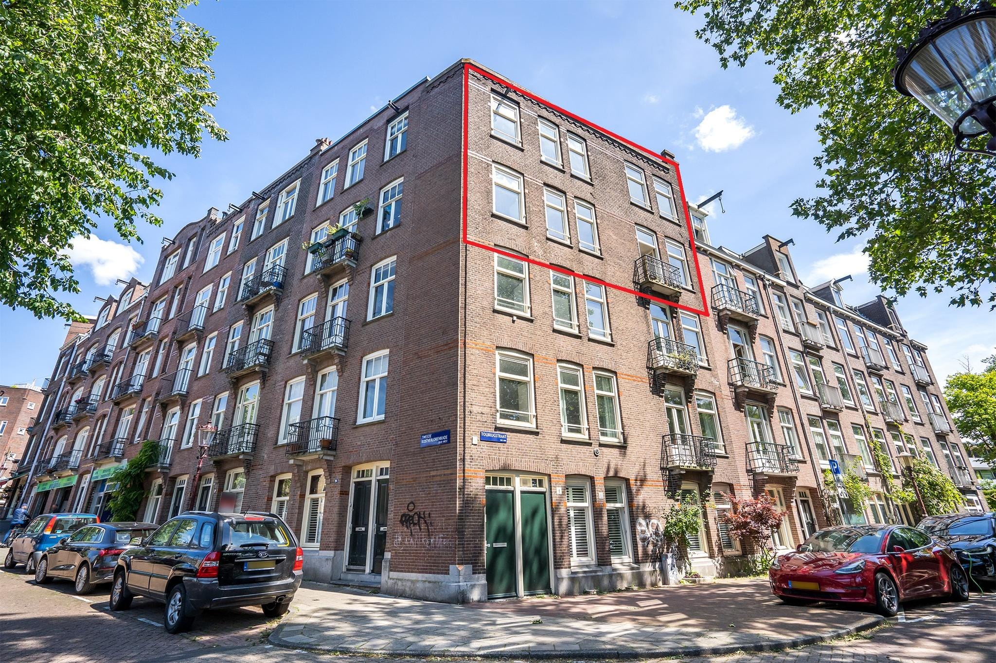 A wonderfully light corner apartment in one of the most beautiful (destination traffic only) streets of Oud West. Approximately 78 m2 of living space, unobstructed view over waterway and park from both the luxurious and cozy kitchen and from the spacious living room. Two balconies at the front and rear with beautiful views. Beautiful recently renovated bathroom, a light oak floor on both floors and two spacious and quietly located bedrooms. The light from sunrise to sunset and privacy in all rooms of this apartment, offer you a unique living comfort in the middle of the lively Old West.