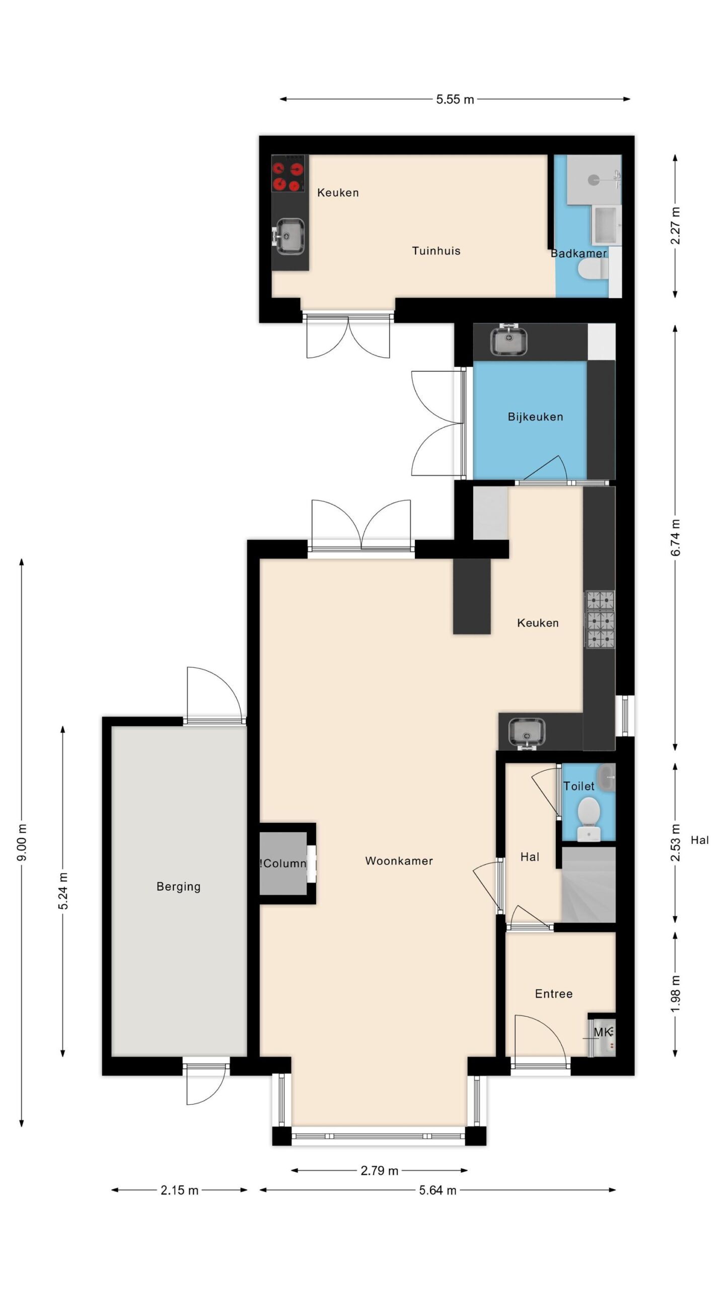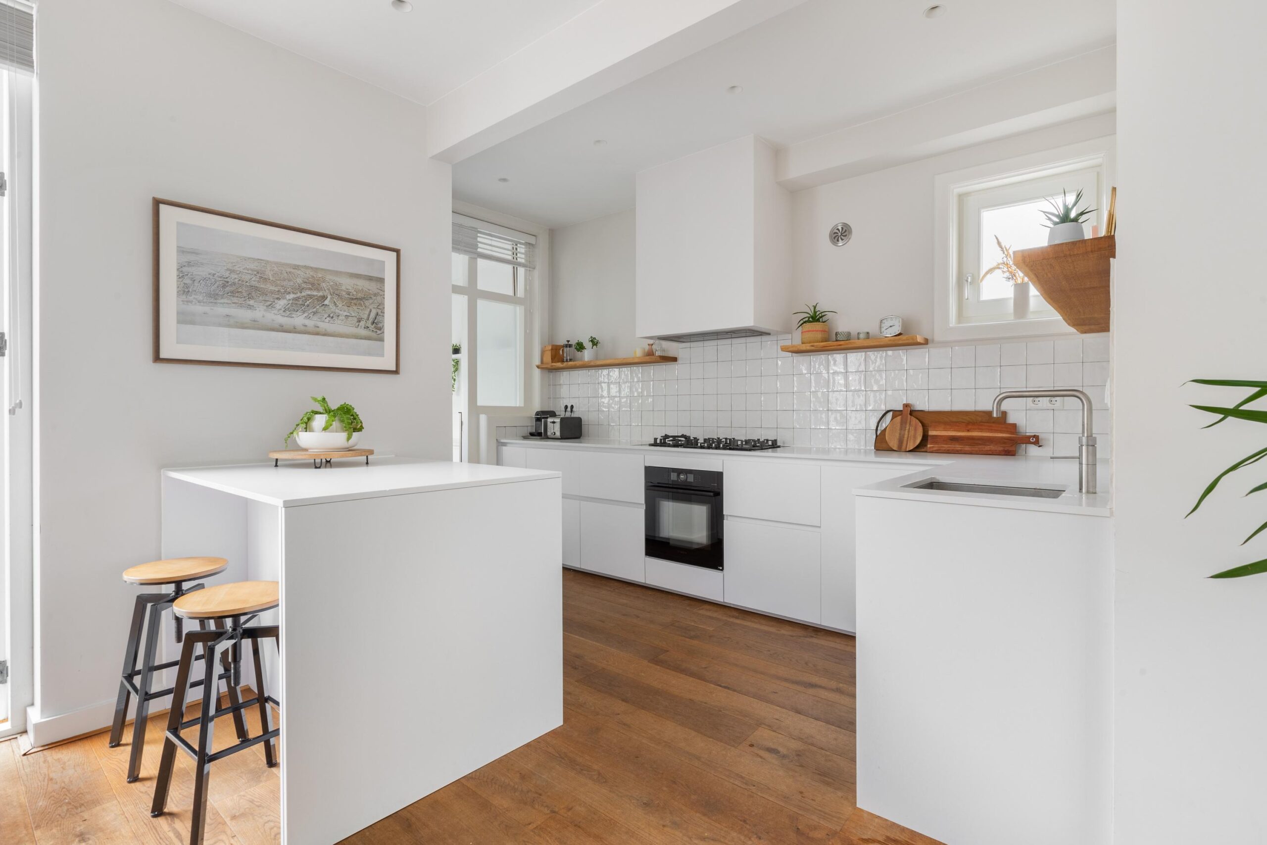 Via de entree loop je door naar de woonkamer met gashaard. Deze staat direct in verbinding met de open keuken die van alle gemakken voorzien is. De keuken heeft een koken waterkraan, een vaatwasser, koelkast, vriezer en meer dan genoeg kastruimte. In het verlengde van deze keuken is tevens een ruime bijkeuken betrokken, in dezelfde eigentijdse stijl als de keuken.