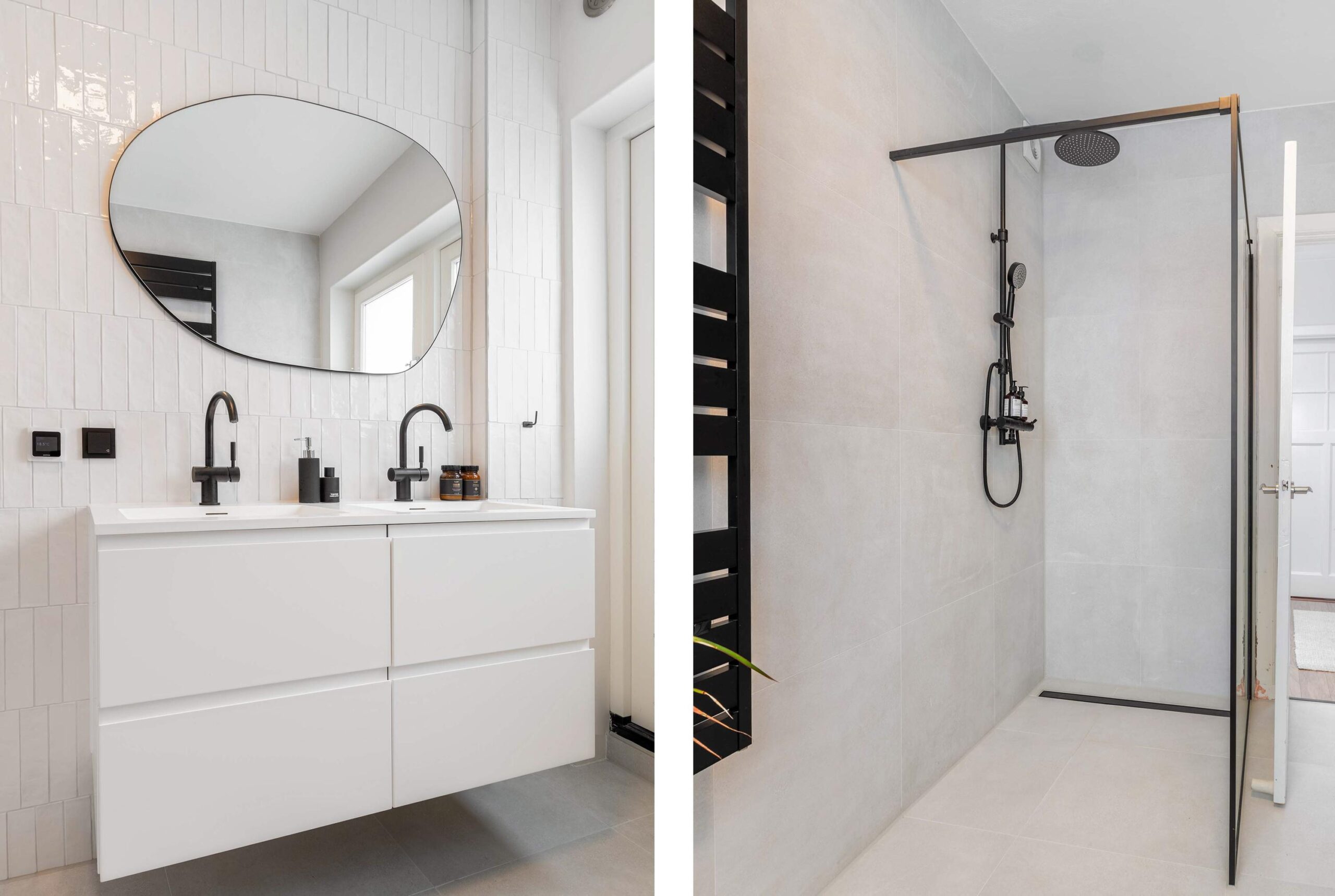 Op de eerste verdieping bevinden zich nog eens 3 ruime slaapkamers met design ventilatoren in het plafond. Twee van deze kamers hebben ruime ingebouwde kasten en aan de voorzijde is er toegang tot een knus en gezellig balkon. Ook op deze woonlaag is een luxe badkamer aanwezig die helemaal van deze tijd is. De strakke afwerking in combinatie met de zwarte kranen zorgen voor een sfeervolle en tevens hotel-achtige uitstraling.