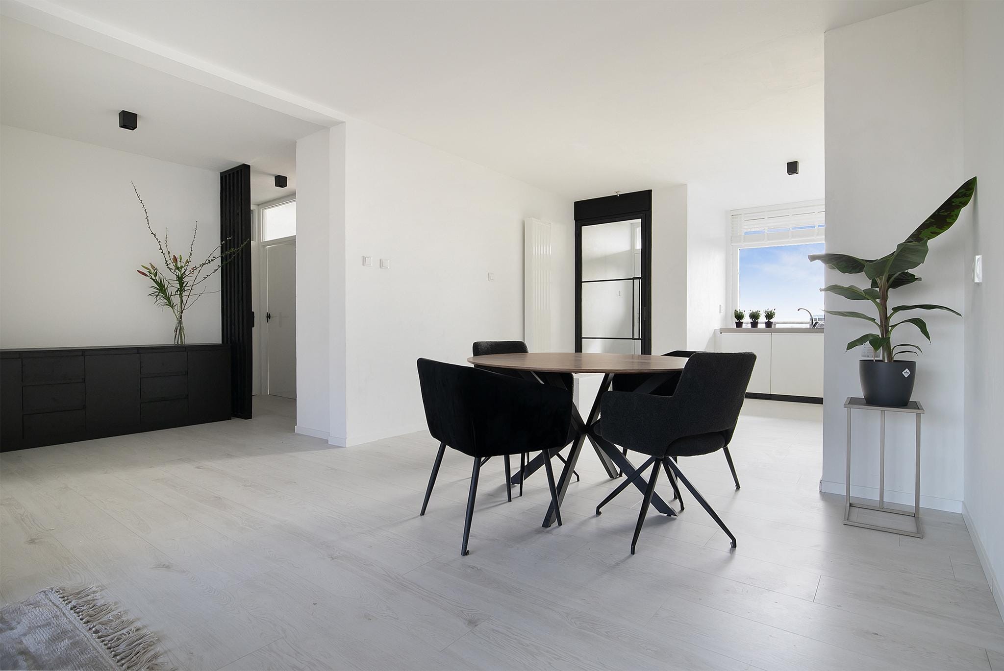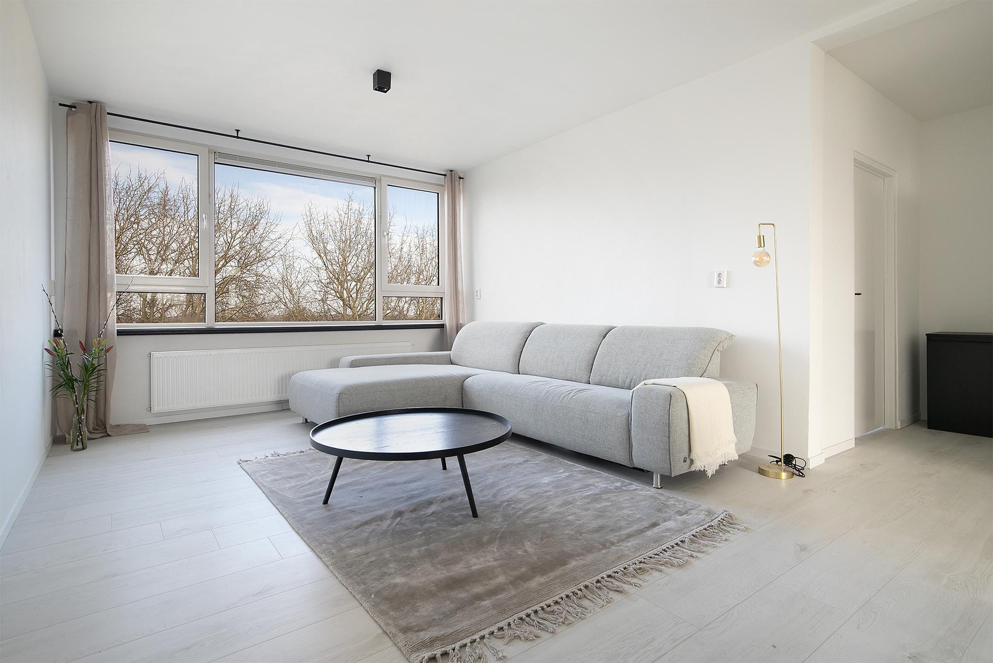 Op de bovenste verdieping vindt u via een galerijontsluiting de entree van het appartement. Als u het appartement binnentreed komt u als eerst terecht in de entreehal voorzien van een meterkast en kapstok. De hal en de ‘live and dine area’ wordt gescheiden door een strakke zwart gepoedercoate deur. De lichte woonkamer en keuken zijn op hoog niveau afgewerkt en volledig gerenoveerd in 2023. De keuken beschikt over een combioven, vaatwasser, koelkast en gasfornuis. Vanuit de woonkamer is er toegang tot de ruime masterbedroom die toegang biedt tot een royaal balkon, het balkon heeft uitzicht over het groengebied rondom het Zwijnsmeertje. De luxe badkamer is voorzien van een wastafel met meubel en een inloopdouche met zowel een regendouche als een handdouche. Tegenover de masterbedroom is er toegang tot een hal die leidt naar de volgende twee slaapkamers en het separate toilet met fonteintje. Ook deze slaapkamers zijn van een goed formaat en strak afgewerkt, door de natuurlijke lichtinval zijn dit zeer fijne ruimtes.