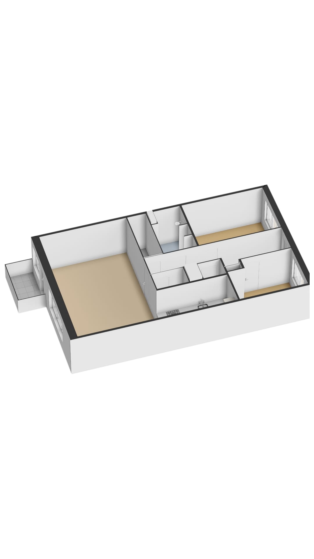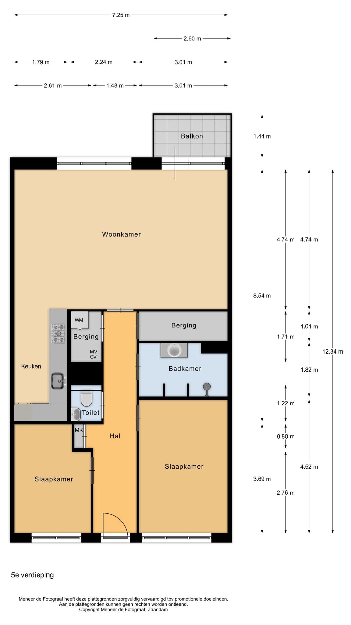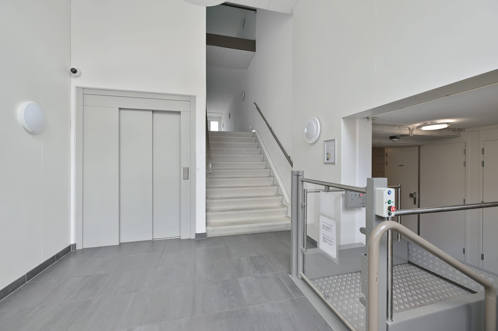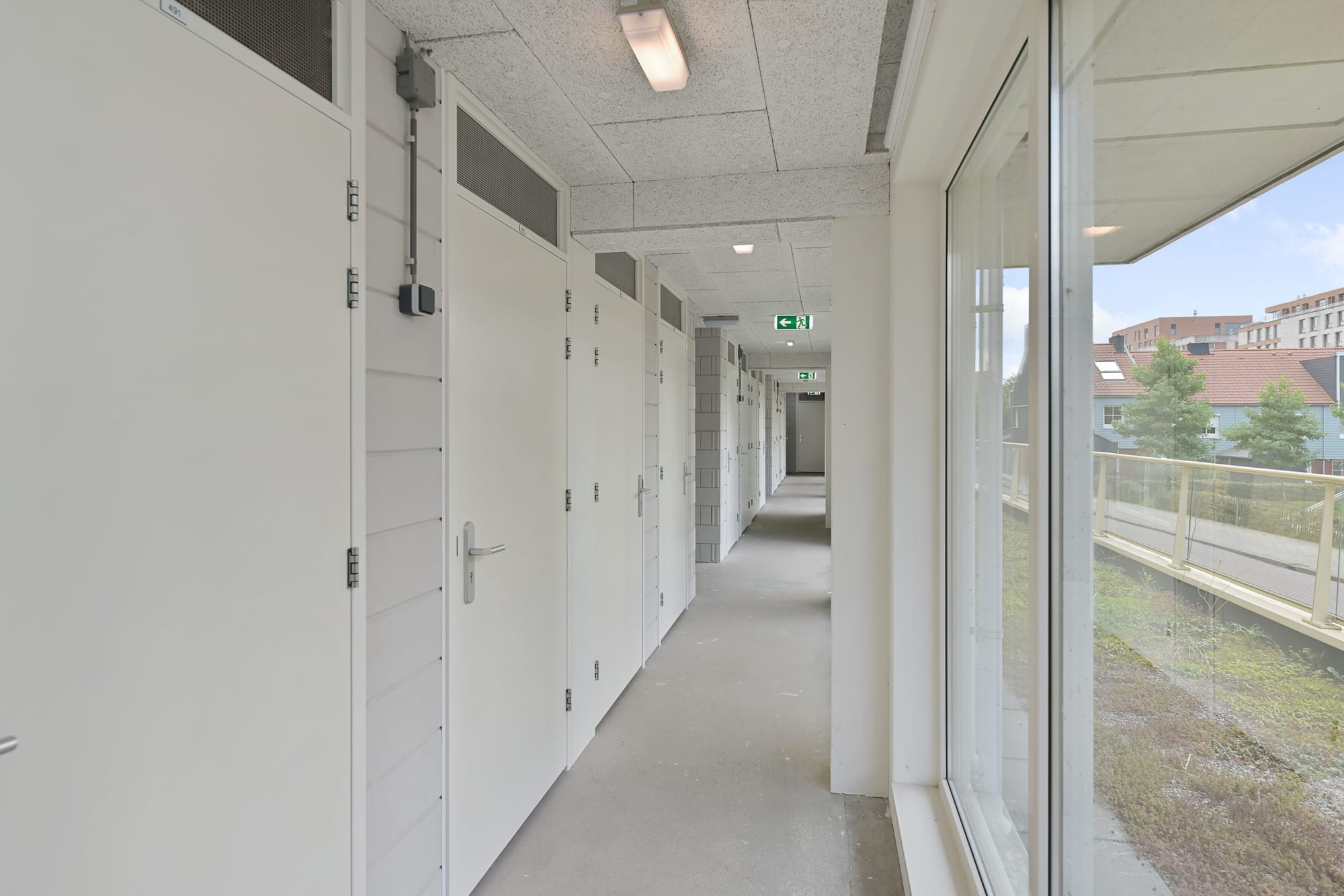 Via de centrale hal met intercomsysteem brengt de lift of de trap je naar de vijfde verdieping. Bij binnenkomst in het appartement betreed je de lange hal met aan weerszijden slaapkamers. De slaapkamer aan de rechterkant is het grootst en heeft ruimte voor een tweepersoonsbed, veel kastenruimte en beide slaapkamers hebben uitzicht op de achterzijde van het complex.