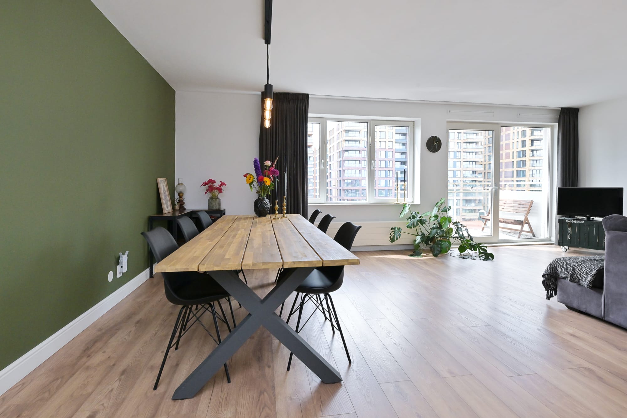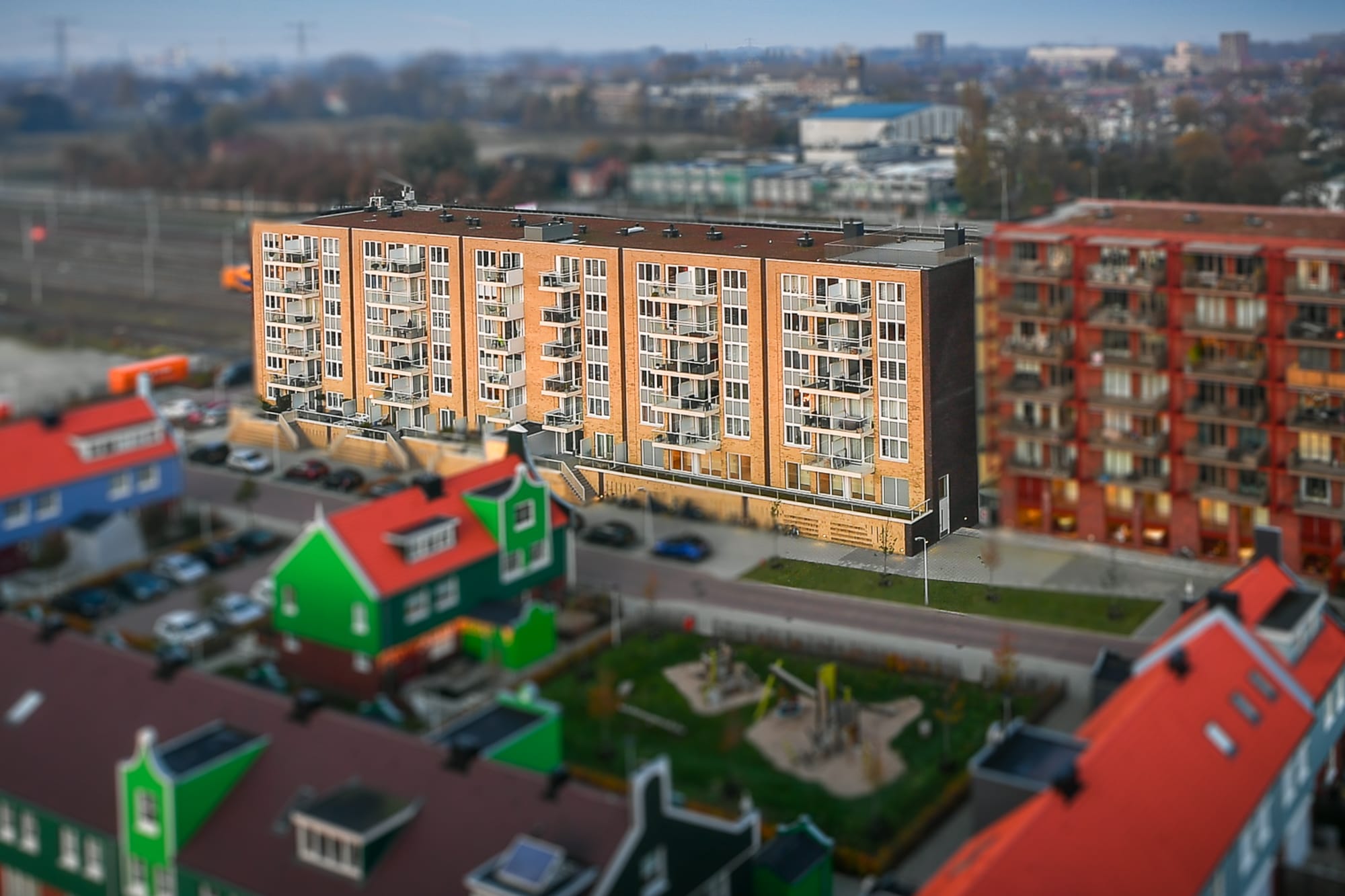This apartment is located on the fifth floor of the apartment complex in Zaandam and has an external storage room and balcony. From the house you not only have a beautiful view of the houses with a ‘Zaanse look’, the apartment is also in a good location. Zaandam station can be reached within 5 minutes by bike and the apartment has its own indoor parking space. In the vicinity you will find many children’s playgrounds, various schools, a large supermarket and gyms. Within 8 minutes’ drive you are at the Zaandam residential boulevard, ideal for getting home ideas for your new apartment during the weekend. Do you prefer to go shopping? The center can be reached within 15 minutes’ walk!
