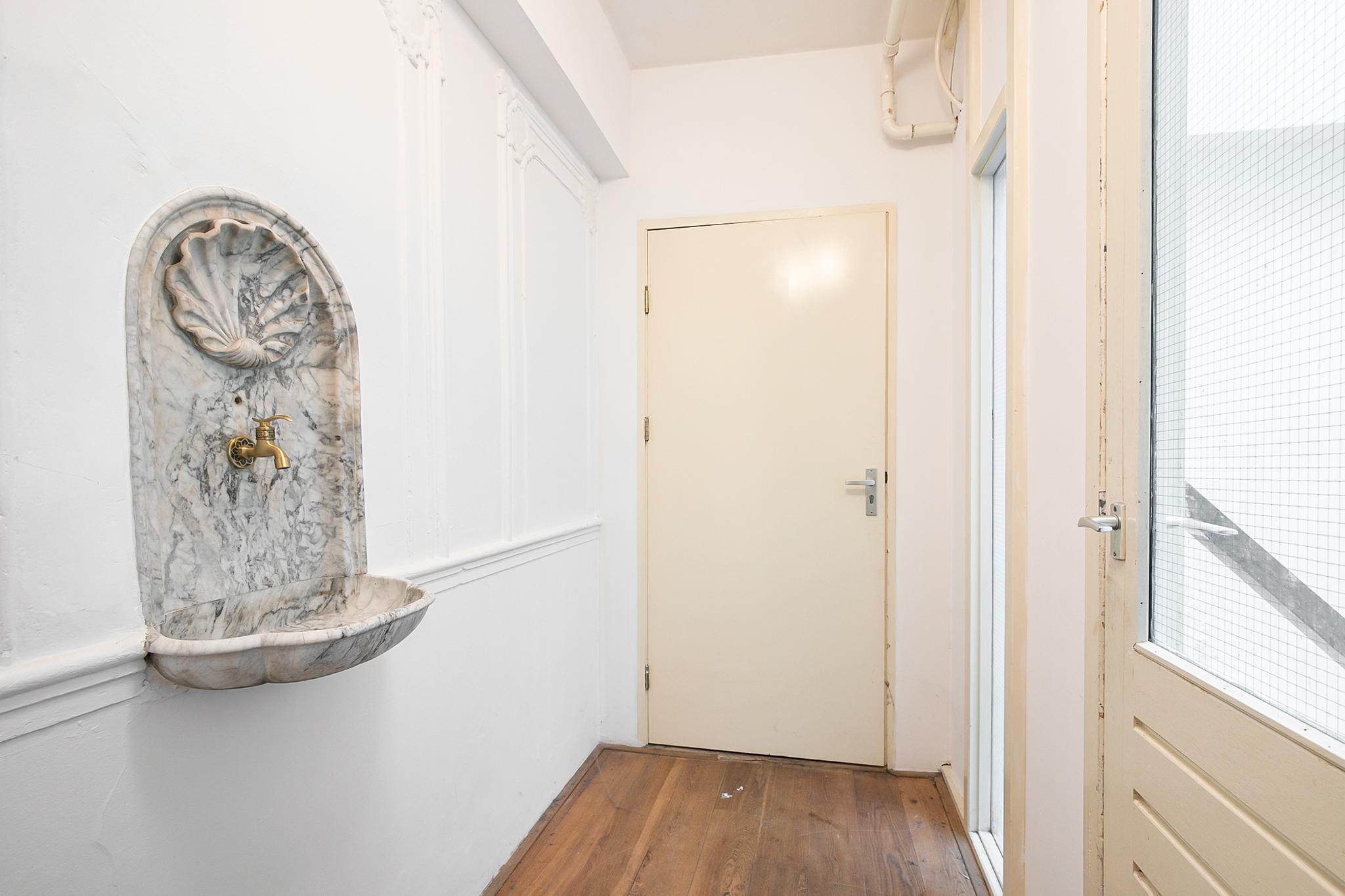 The bright hall, with wooden floor over the entire floor, provides access to the various rooms and is openly connected to the spacious and bright living room. Large windows offer a beautiful view over the water and the Damrak, while the beamed ceiling gives the room a characteristic appearance. Here you have enough space for a comfortable sitting and dining area.
