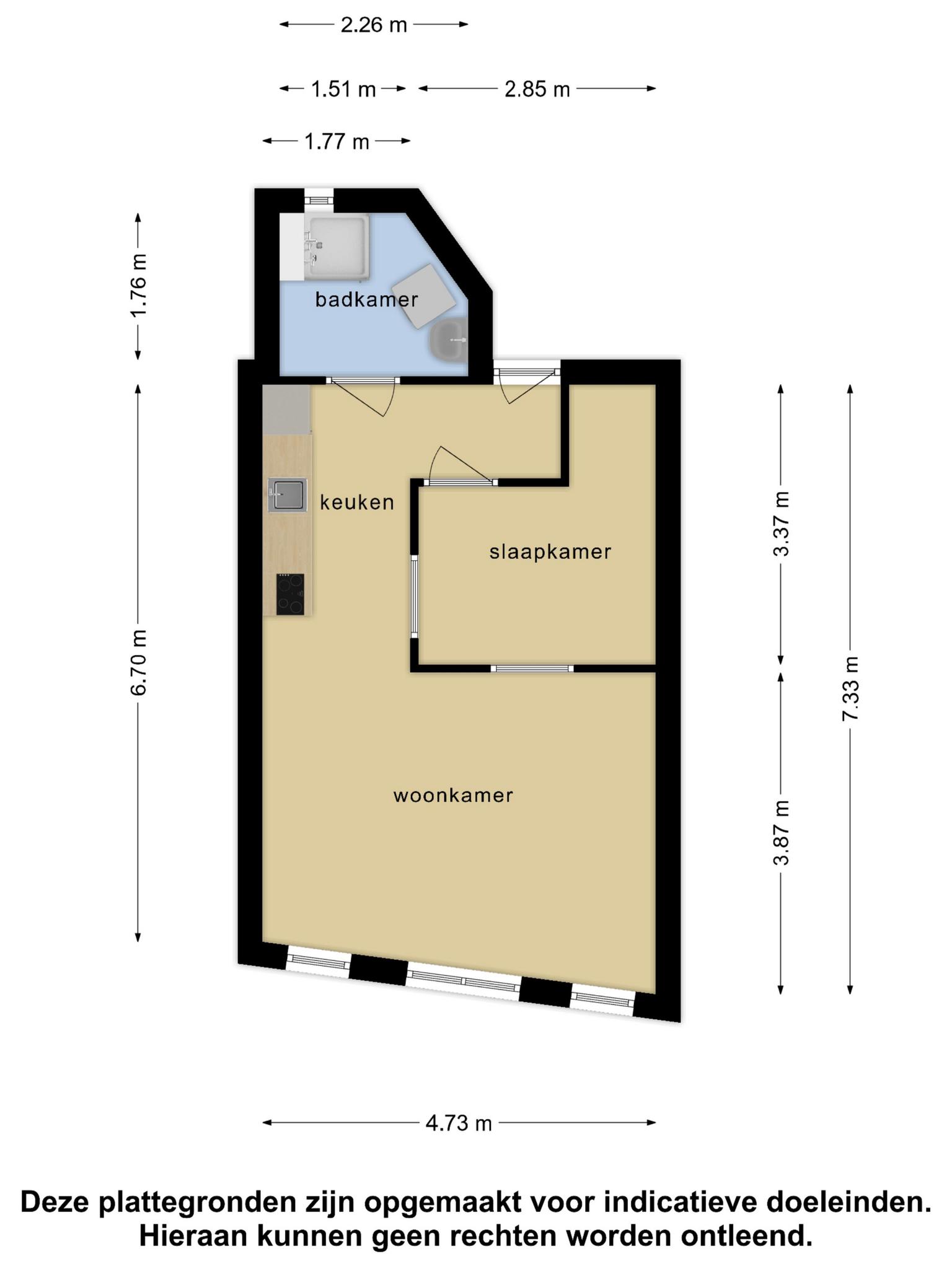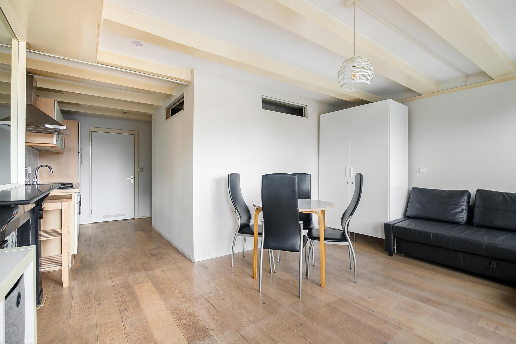 De open keuken is voorzien van een licht keukenmeubel en diverse inbouw apparatuur zoals een, koel- en vrieskast en gaskookplaat met afzuigkap. De slaapkamer heeft een lichte afwerking en is eveneens voorzien van een balkenplafond en een venster. Dit zorgt voor een aangenaam lichtinval en een rustige sfeer. De badkamer is voorzien van een lichte wandtegel gecombineerd met een donkere vloertegel en uitgerust met een douche, wastafel, hangend toilet en witgoedaansluiting.