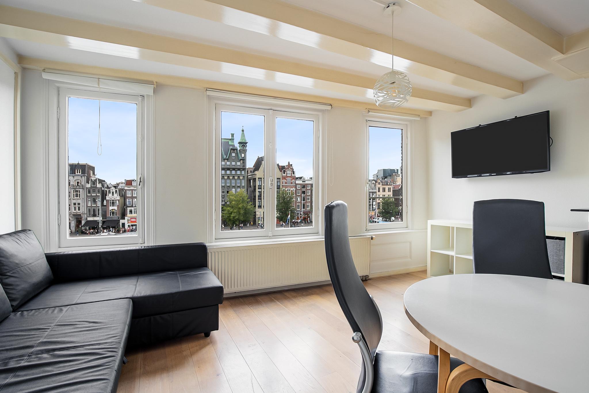 Living at Warmoesstraat 54H with a unique view of the Damrak. Atmospheric two-room apartment, located on the second floor of a characteristic building from 1811 on private land. The three large west-facing windows provide spacious and bright living comfort. In addition, you can enjoy an attractive finish while retaining the original details such as the beamed ceiling.