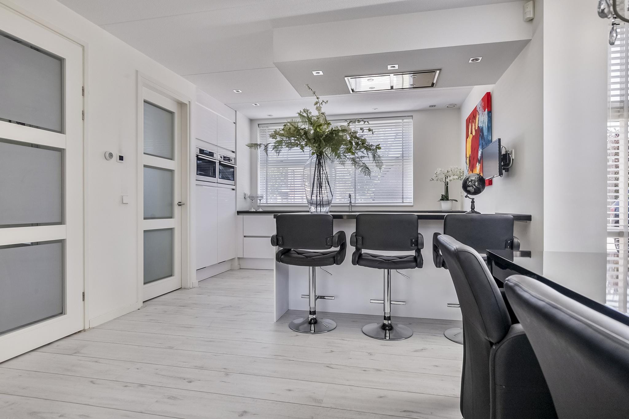 Grenzend aan de woonkamer bevindt zich de instapklare keuken, die van alle gemakken is voorzien. Een langwerpig aanrechtblad en een stijlvol kookeiland met inductiekookplaat, afzuigkap, vaatwasmachine, ovencombinatie en koelkast maken deze ruimte instapklaar en van alle gemakken voorzien. Slimme opbergmogelijkheden in de lades en kastjes zorgen ervoor dat u altijd voldoende ruimte heeft voor al uw keukengerei.