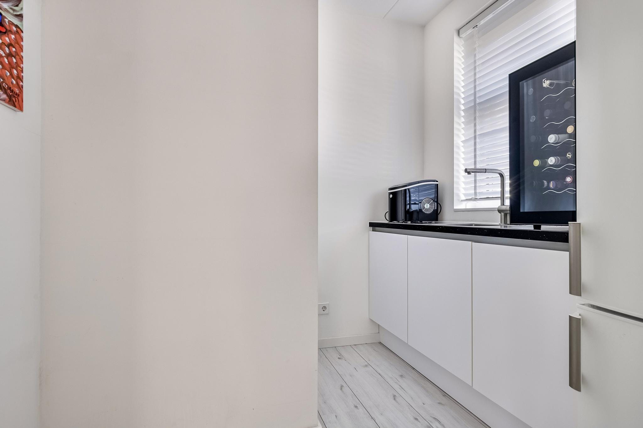 Directly next to the kitchen is the utility room, a handy and multi-purpose room. This room is not only perfect for storage, but thanks to the presence of a sink and extra refrigerator, it also offers possibilities for other practical applications. Whether you need extra space for your groceries, or an additional workspace, you will find all the flexibility you are looking for here.