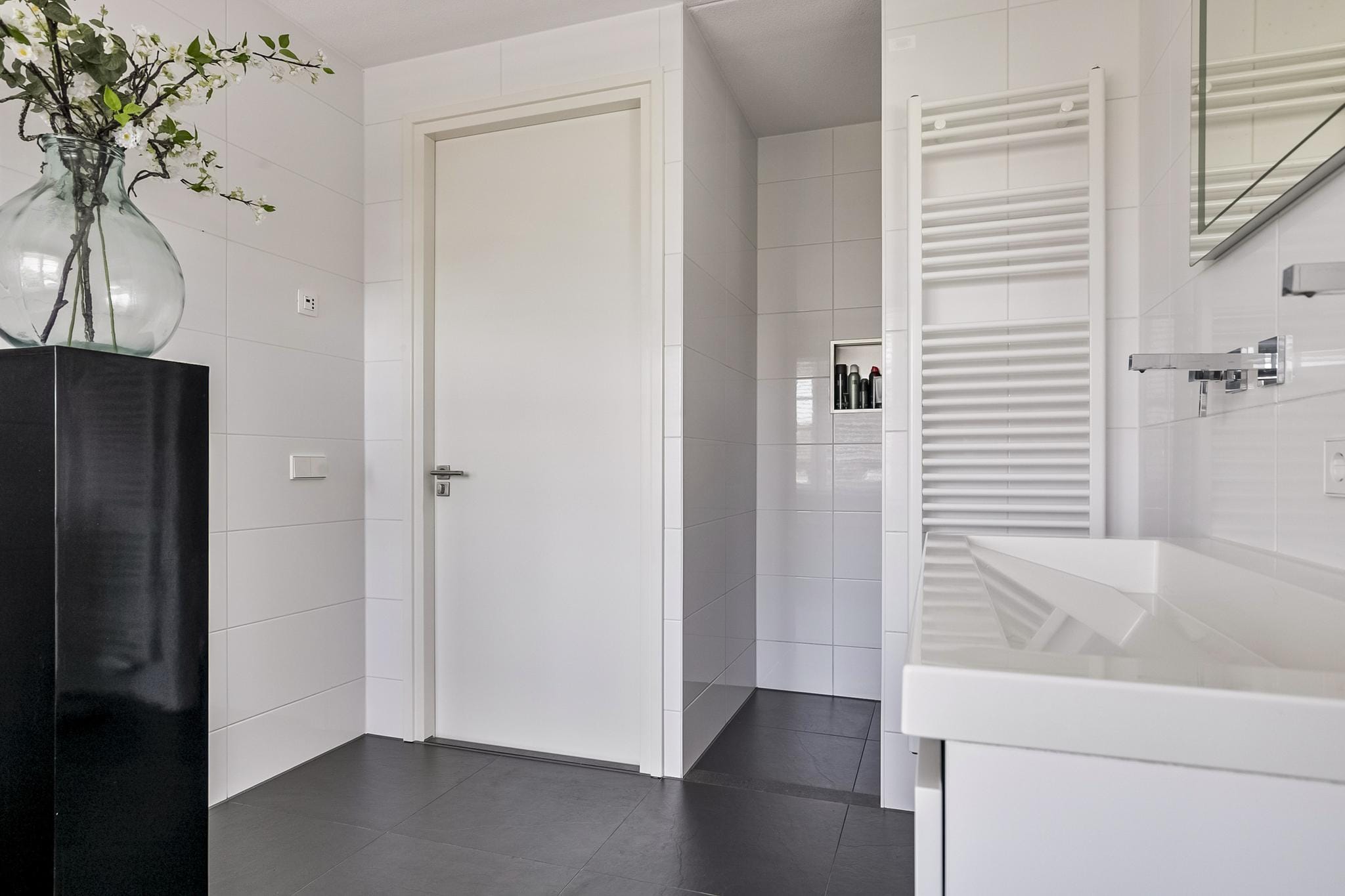 De badkamer op de 1e verdieping is volledig betegeld en instapklaar, en biedt een oase van rust met een ligbad, inloopdouche, dubbele wastafel, spiegel en een praktisch opbergmeubel. Daarnaast is er een separate toiletruimte op deze verdieping, wat zorgt voor extra gemak voor het hele gezin. De wasruimte op de 1e verdieping biedt meer dan alleen ruimte voor de wasmachine en droger. Dankzij de ruimte kunt u hier ook een werkplek creëren of de ruimte inzetten als extra opbergruimte. Een flexibele ruimte die zich aanpast aan uw behoeften.