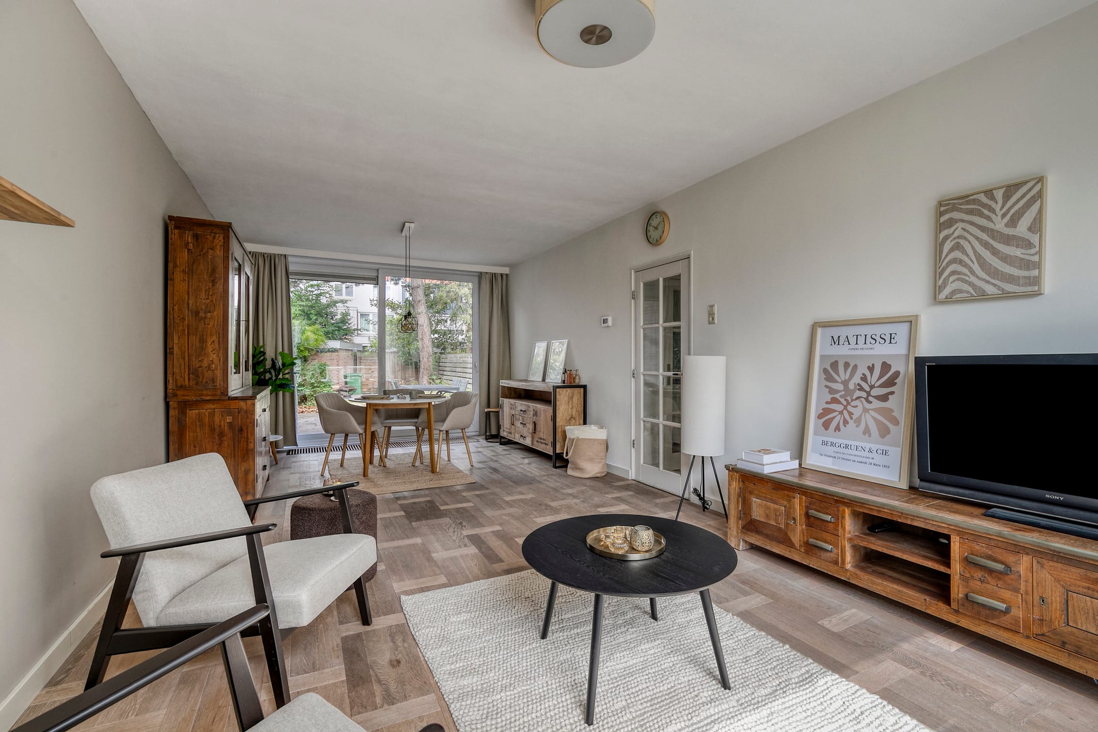 De lichte woonkamer heeft een brede achterpui met schuifdeur richting de tuin. Door de grote raampartijen komt het daglicht hier rijkelijk binnen. De speelse houten vloer en praktische indeling geven het geheel een warme en uitnodigende uitstraling – een fijne plek om met het hele gezin samen te zijn. De moderne keuken, voorzien van alle benodigde inbouwapparatuur, heeft eveneens toegang tot de tuin. Koffie in de ochtendzon of uitgebreid koken met zicht op het groen? Het kan hier allemaal.