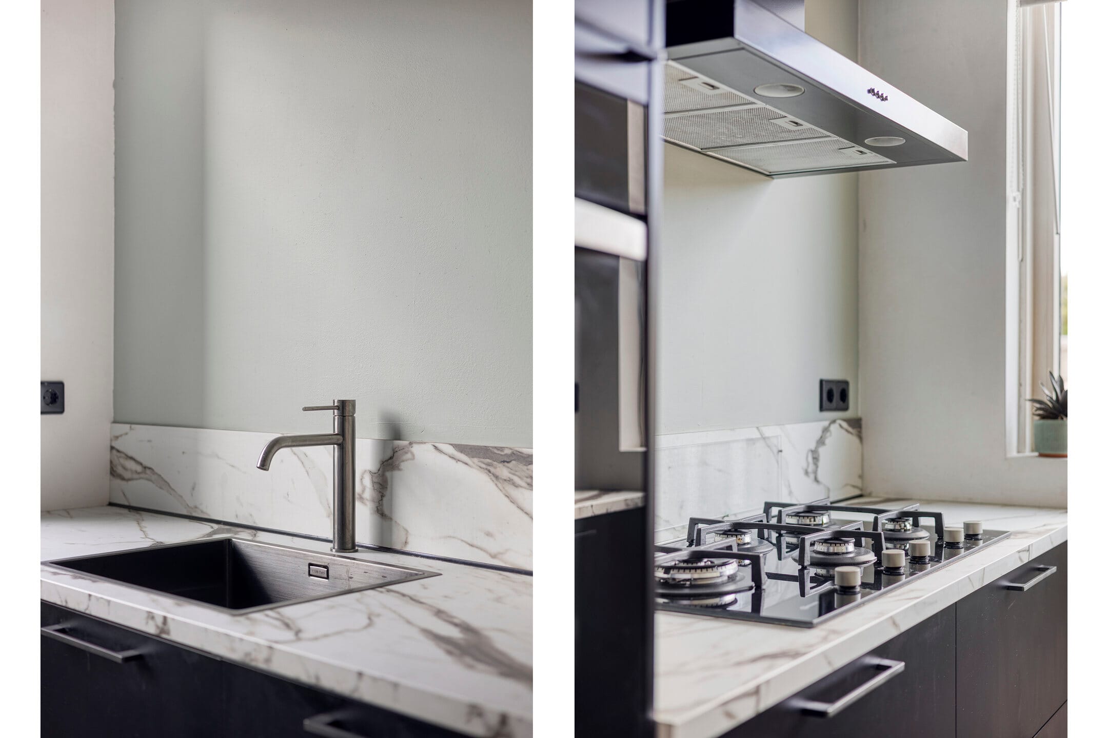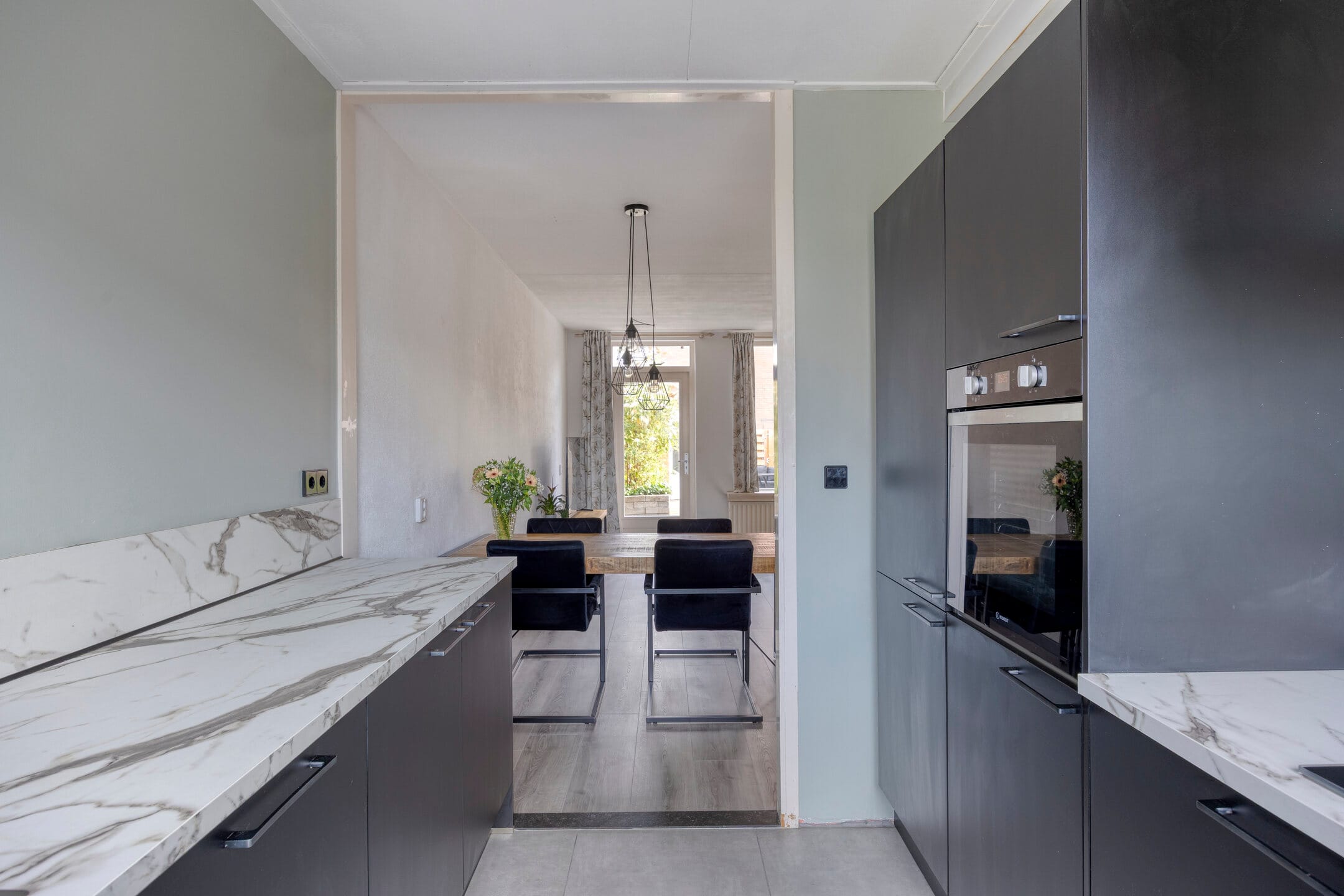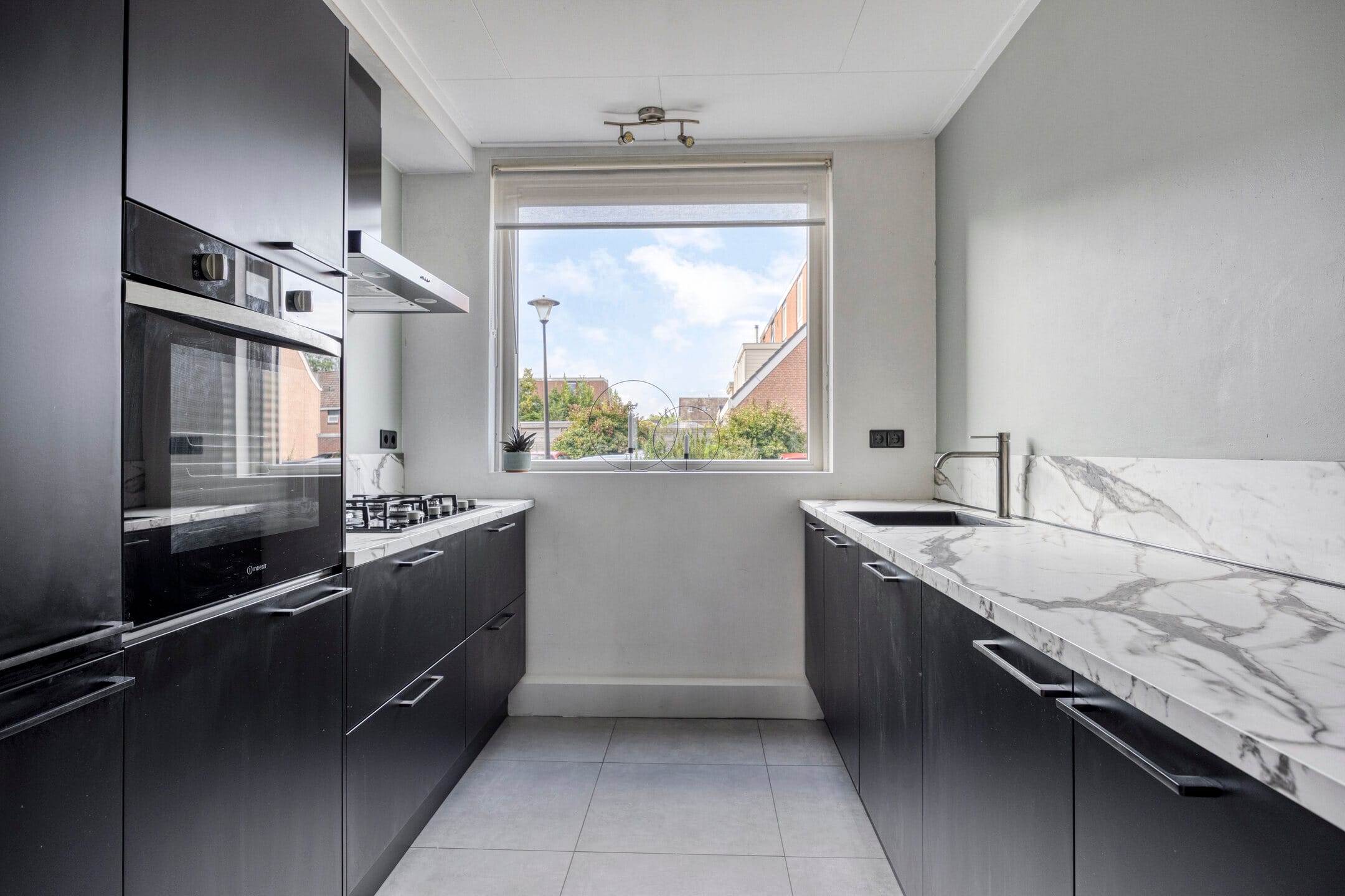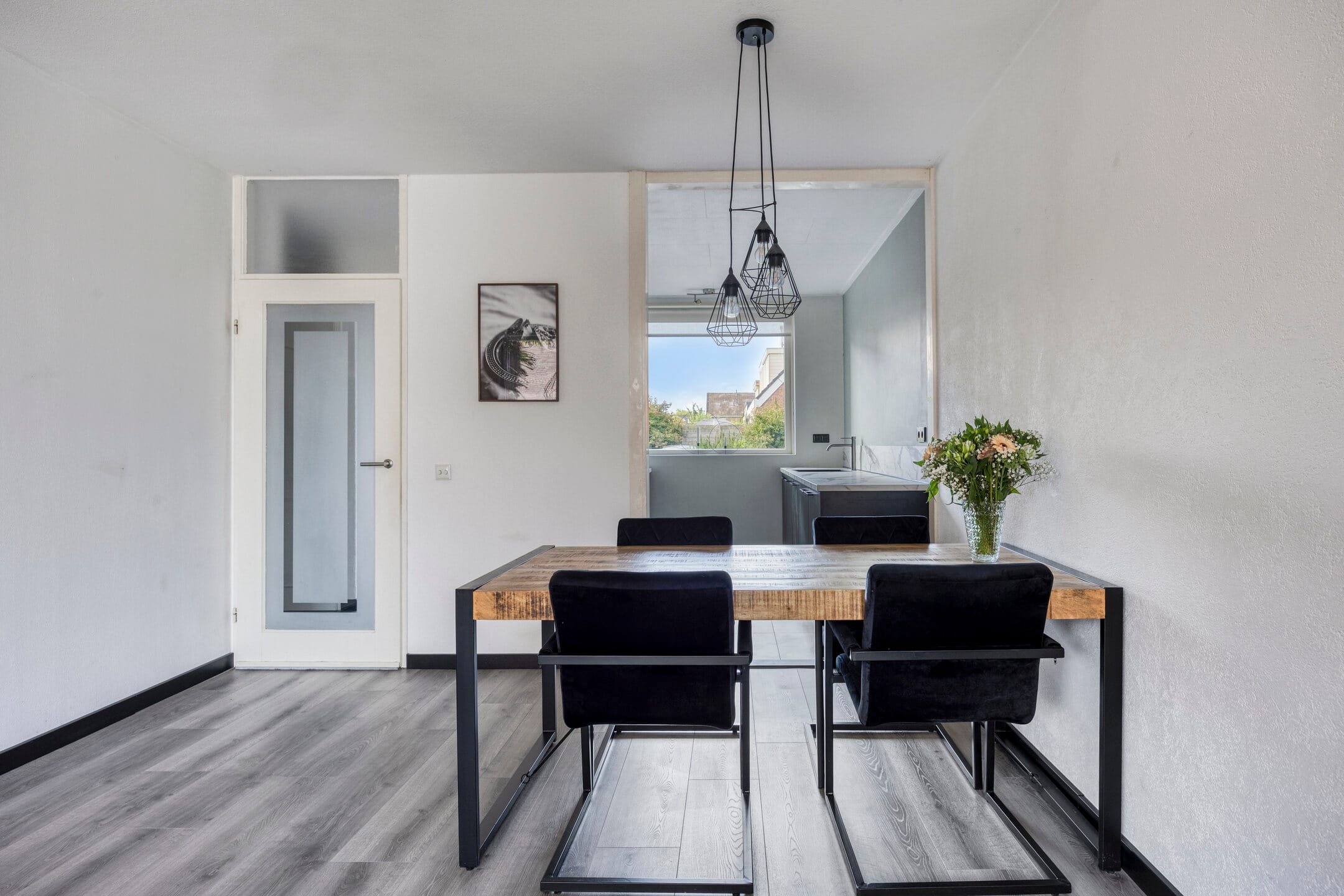 Parking is available in front of the door with a (visitor) permit. No more long walks for groceries. Through the entrance, you enter the hallway, where you’ll find the toilet and meter cupboard. You then walk into the spacious living room, flooded with natural light through its large windows. Adjacent to the living room is the modern open-plan kitchen (renovated in 2021) with various built-in appliances and baseboard heating. The kitchen has a contemporary design and is fully equipped.