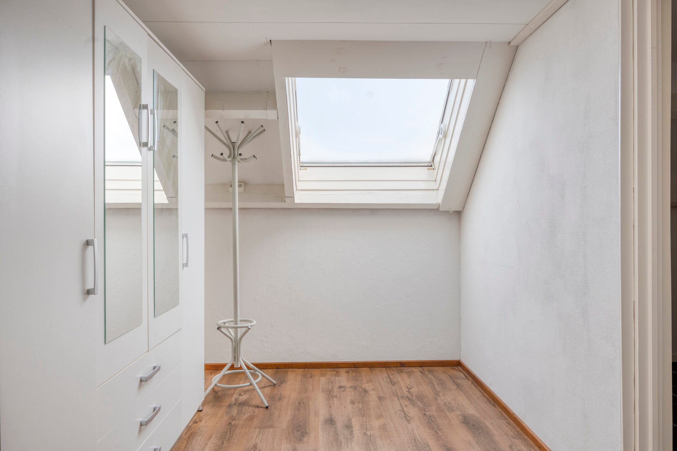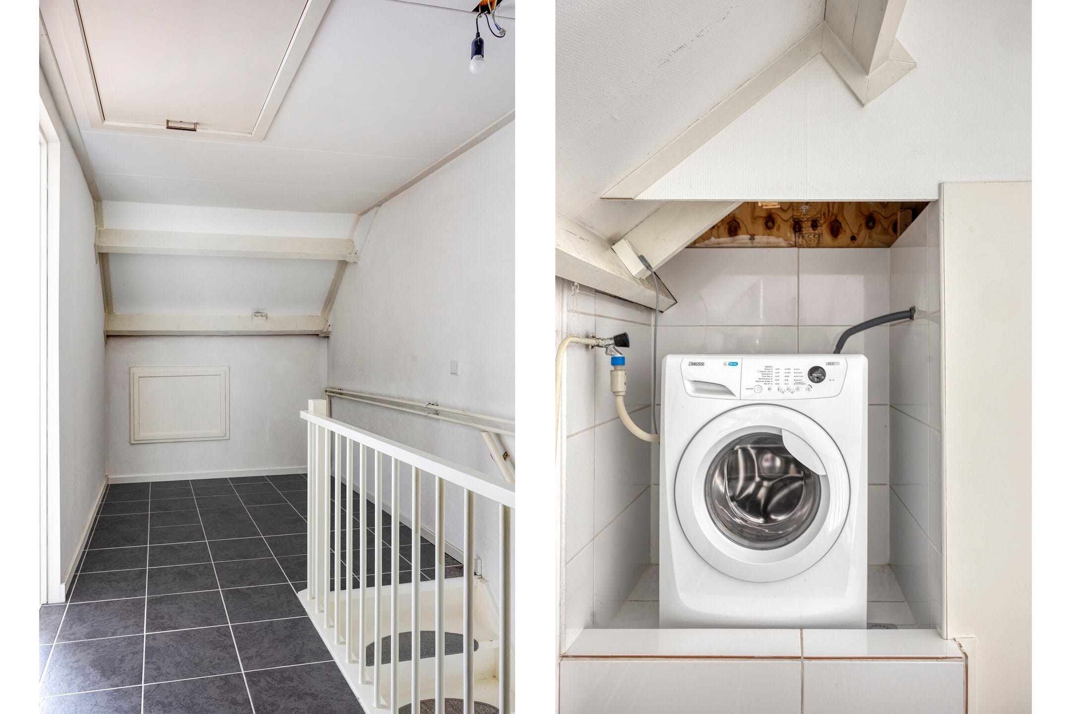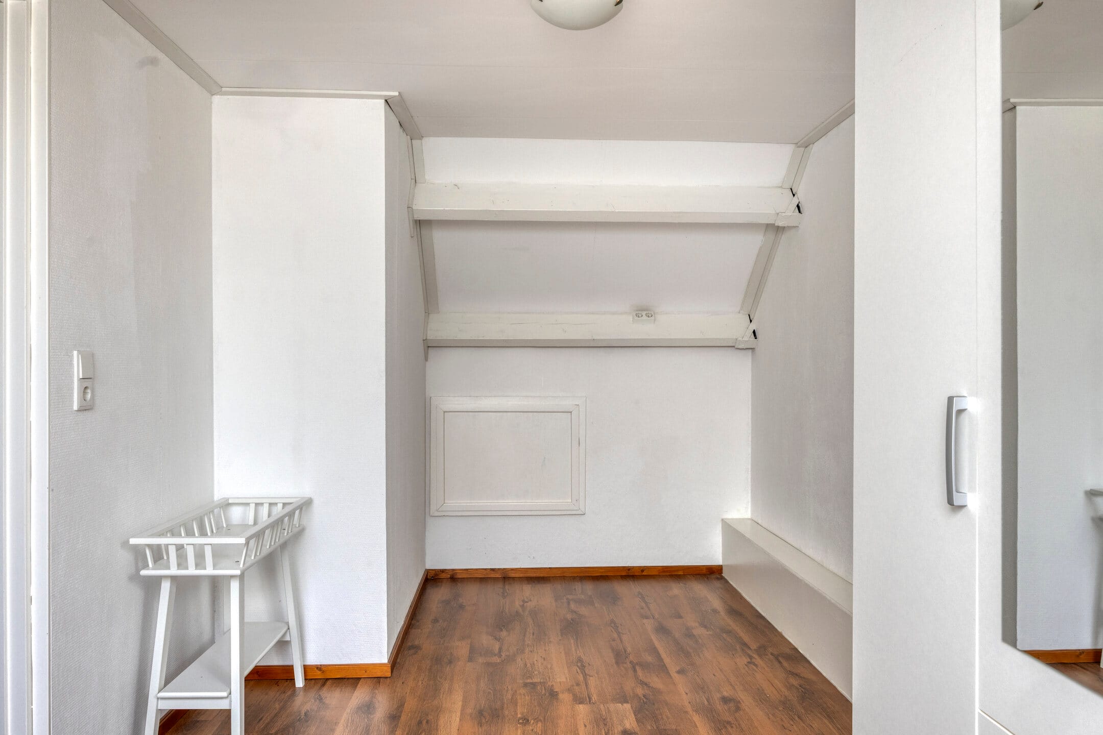 Hier is een enorm ruime overloop waar zich de wasruimte en CV ketel bevindt. De CV is in augustus 2025 vervangen. Tevens is hier ook een trap naar de ruime bergzolder. De slaapkamer is over de gehele lengte van de woning en is makkelijk op te splitsen in 2 slaapkamers.