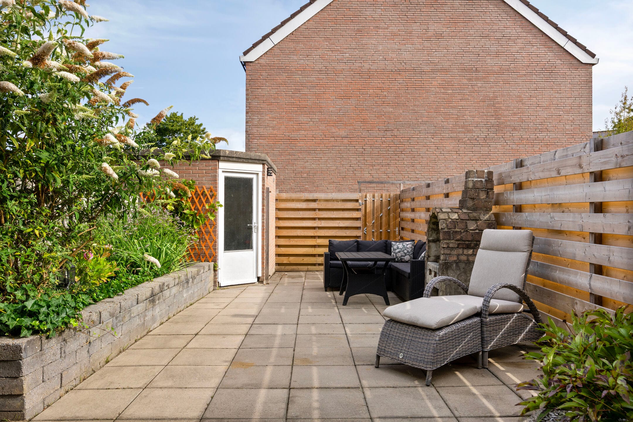 De achtertuin in gelegen op het Noorden, maar heeft toch voldoende zon, gezien de lengte van de tuin. Achterin staat een stenen berging waar je met gemak meerdere fietsen in kwijt kunt.